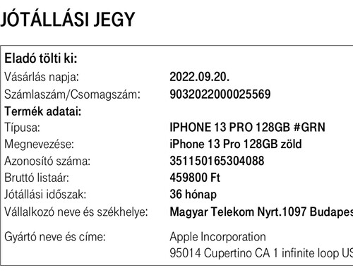 Telekomnál vásárolt 2022.09.20. így 2025.09.20-ig garanciális. (igen részletre vásárolt de már kifizetve)