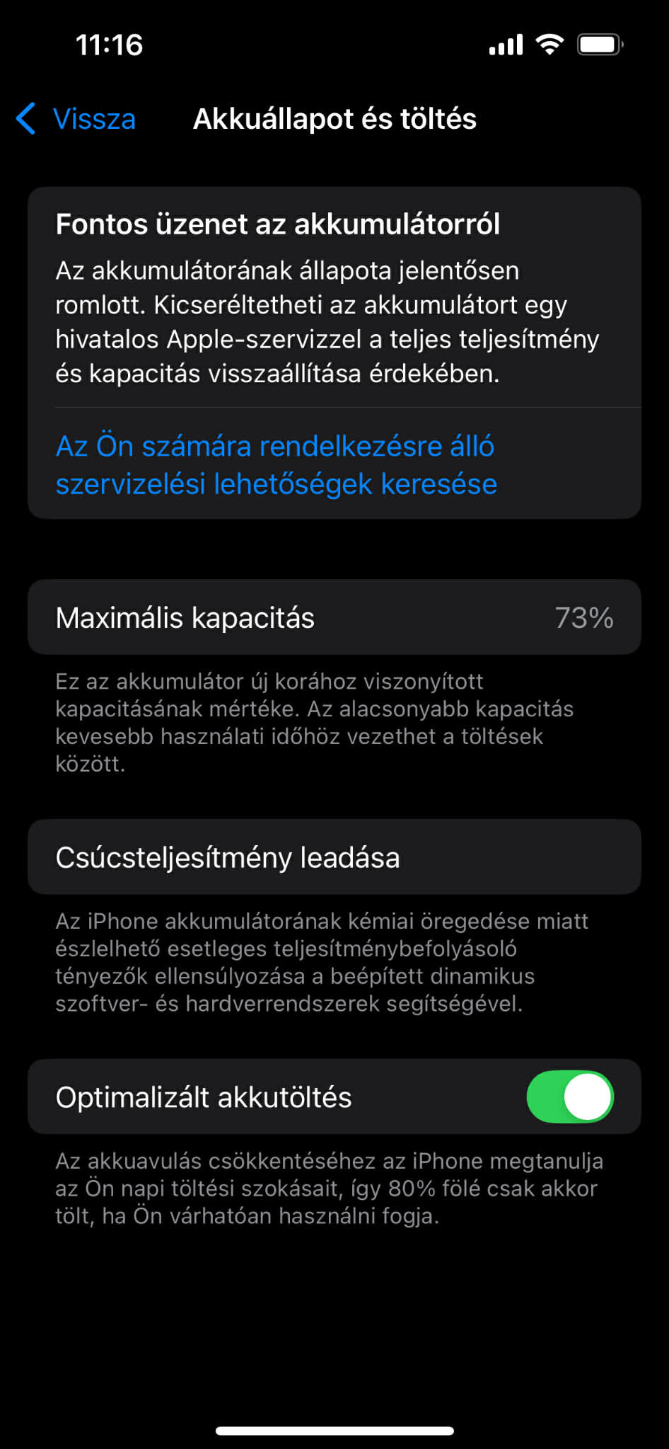 ➤ Akkumulátor 73%