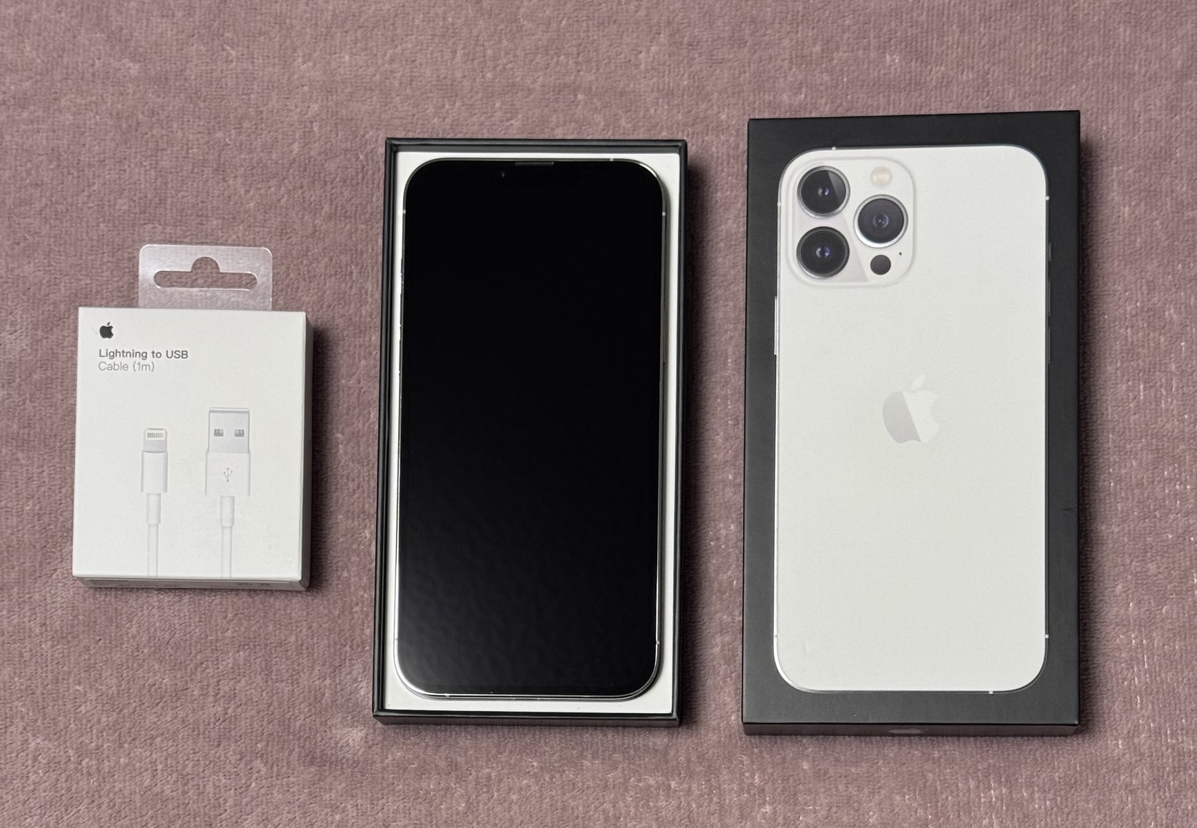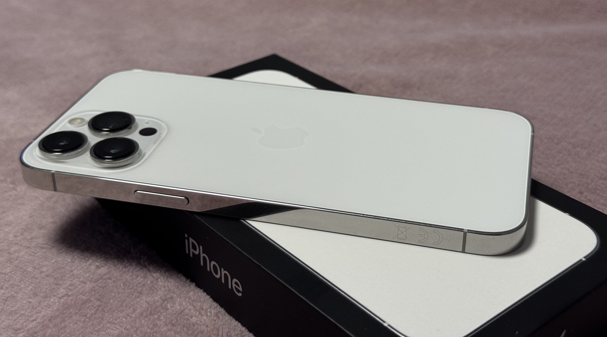 Eladó a címben említett ezüst színű, kártyafüggetlen, 128Gb-os iPhone 13 Pro Max mobiltelefon.