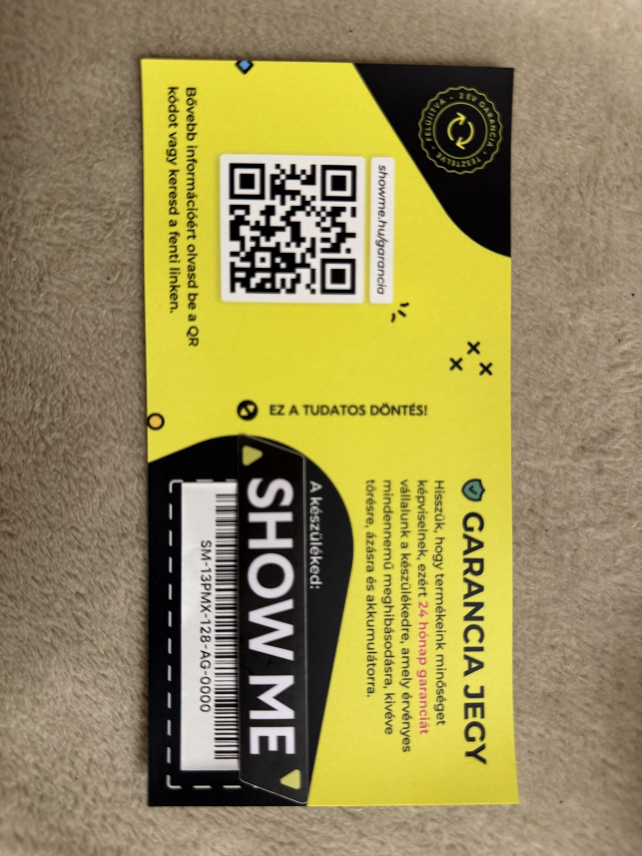 A telefon a ShowMe-től lett vásárolva, ide érvényes a garancia 2026.01-ig.