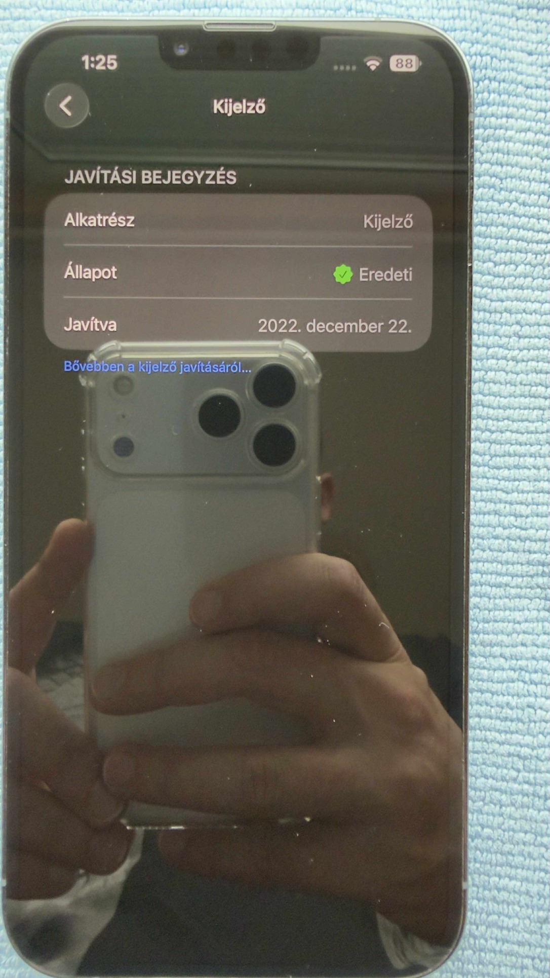 - A kijelző cserélve lett de ugyanazt a saját gyári Apple kijelzőjét kapta