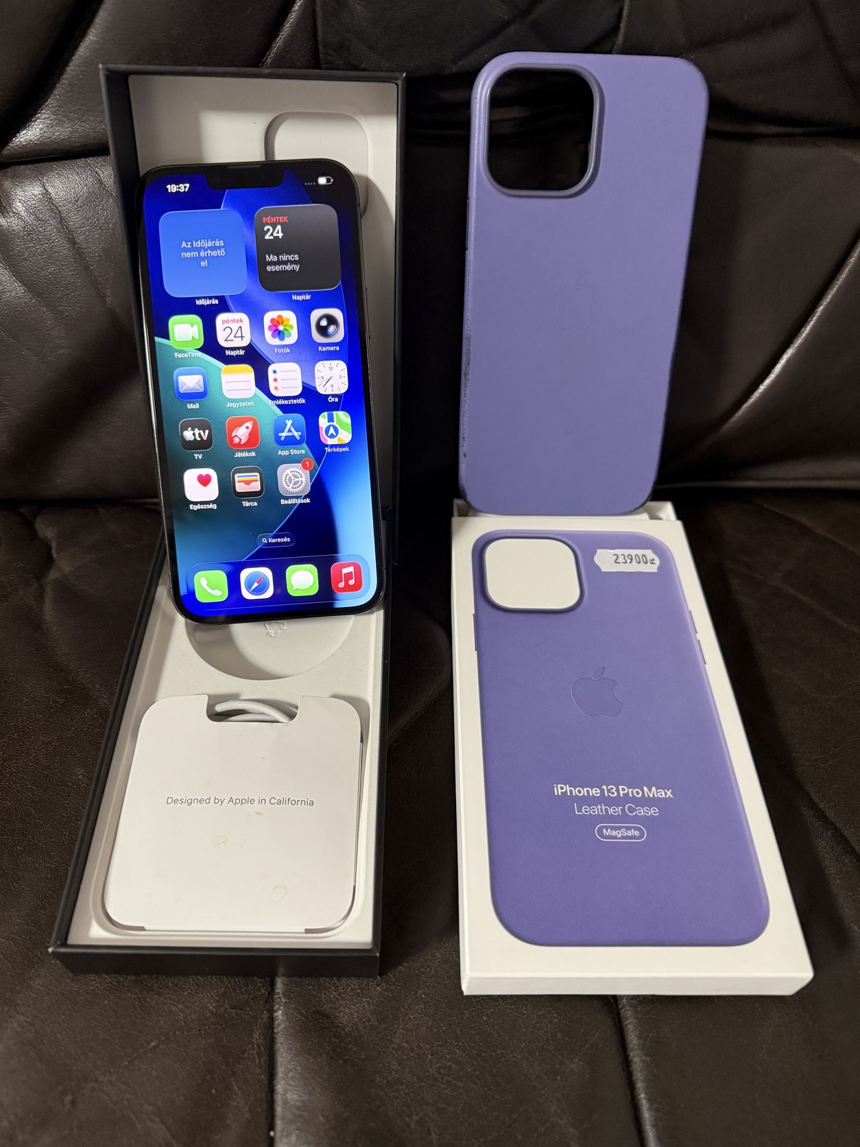 Ajándékba adok hozzá egy eredeti Apple iPhone 13 Pro Max MagSafe lilaakác bőrtokot (mm1p3zm/a) keveset használt állapotban.