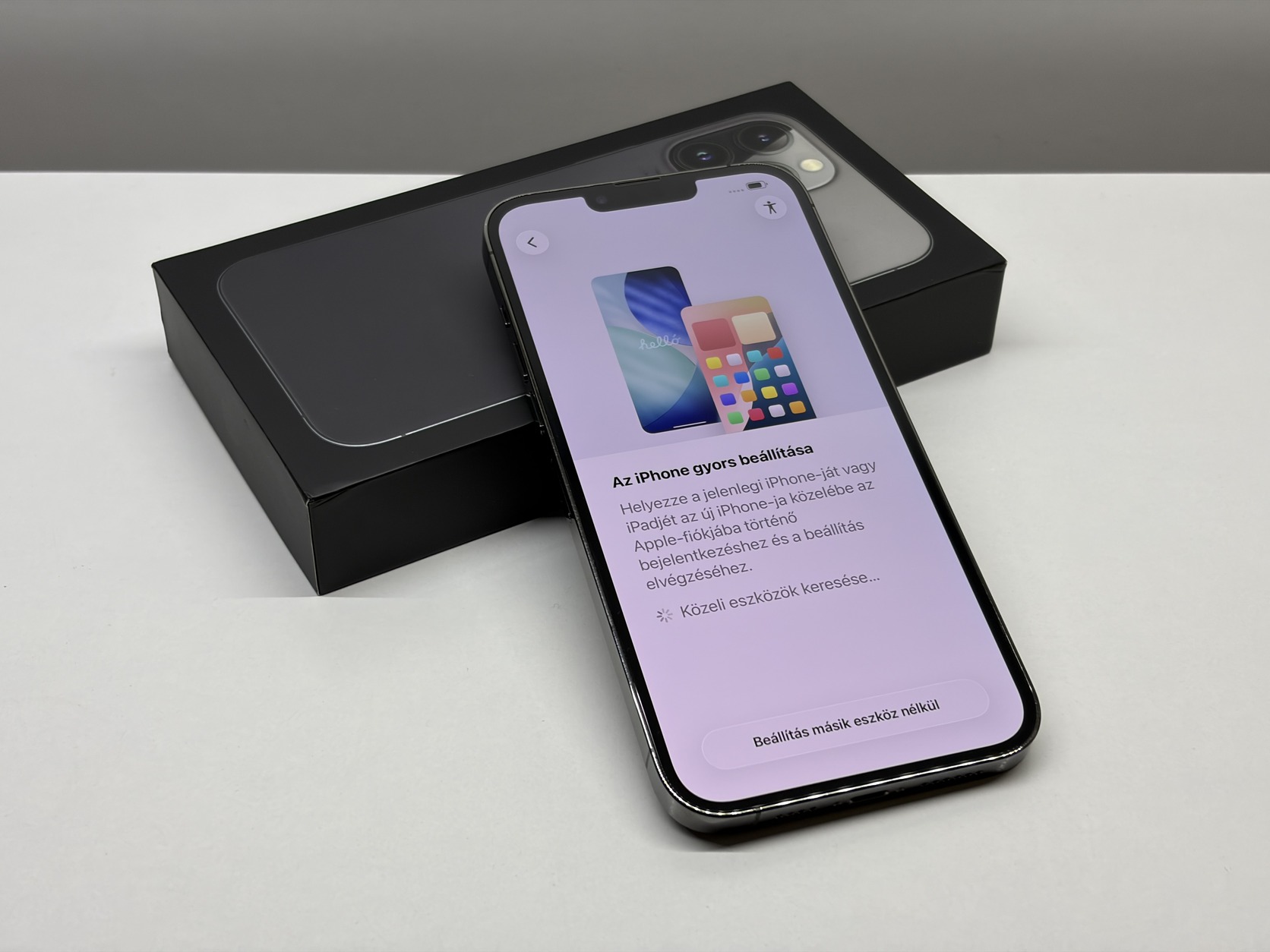 Dobozában, töltőkábellel.
