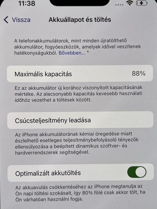 Az akkumulátor állapota a rendszer szerint 88%.