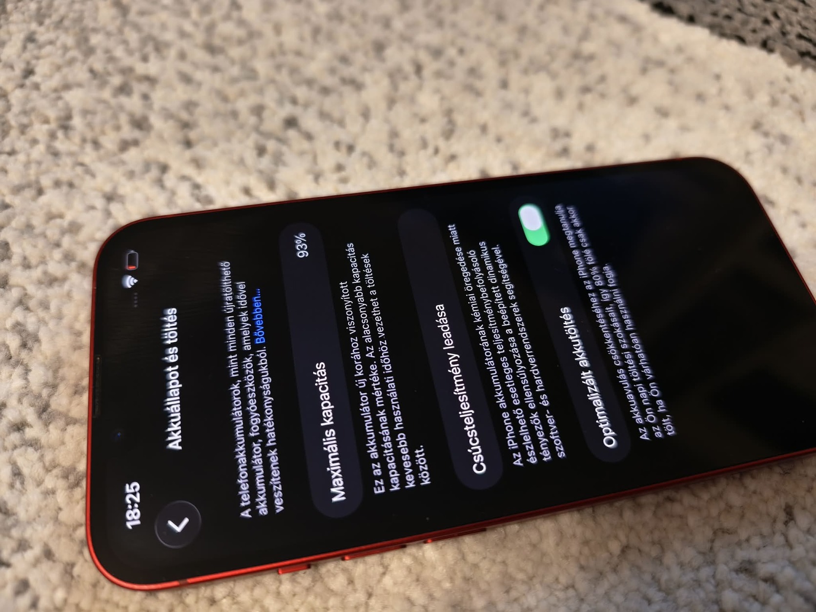 Eladóvá vált 128GB-os Product Red iPhone 13. 93%-os akksival.