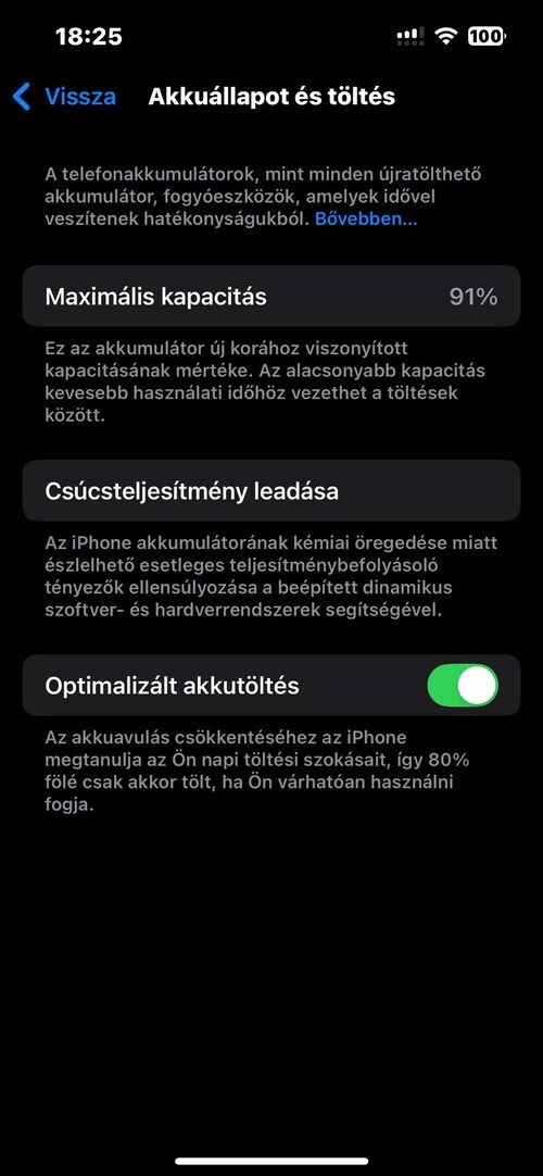 Az Akkumulátora 91%-os nagyon jó állapotban van.