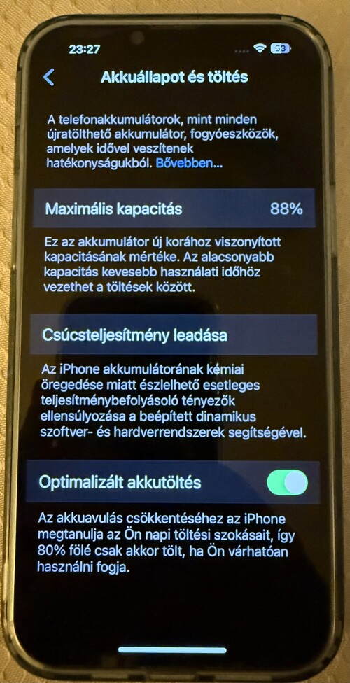 Sierrakék Iphone 13Promax 128GB, 88%-os akkumulátor. (Adok hozzá kijelző védőfóliát és 6 db védőtokot)