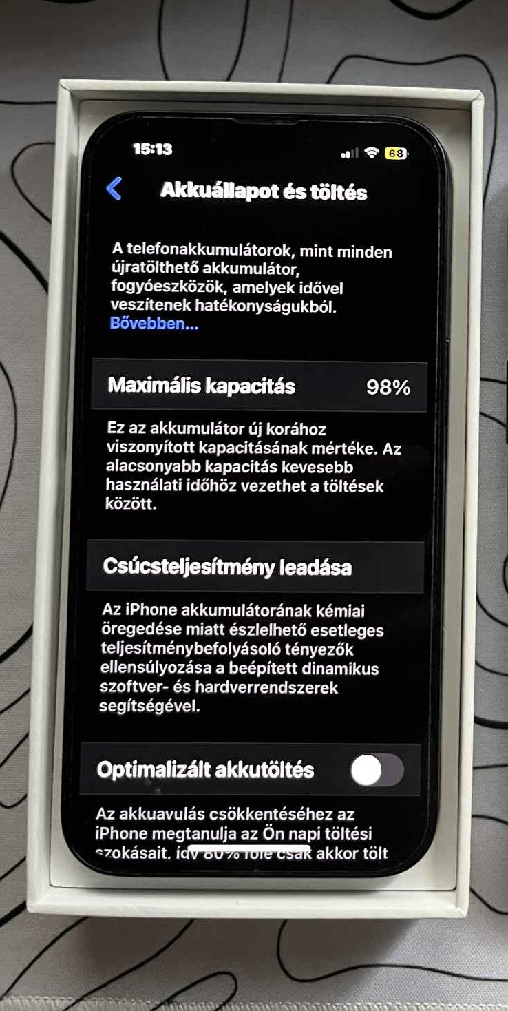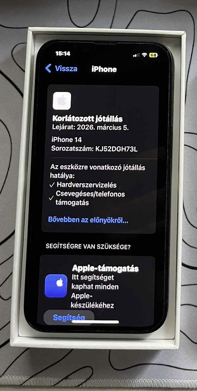 Eladó egy szép állapotú , karcmentes iPhone 14 98% akkumulátorral, a hátulján porkopások vannak csak akkor látszik ha rávilágítanak a képernyő viszont hibátlan. Apple Garancia van rá 2026 március 5.-ig.