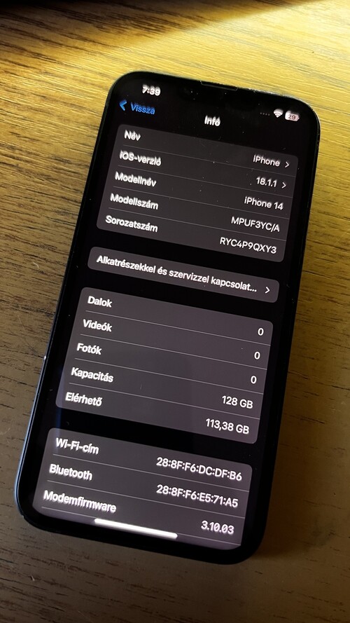 Fotón látható iphone 14 eladó, kártyafüggetlen 128 gb-os verzió.