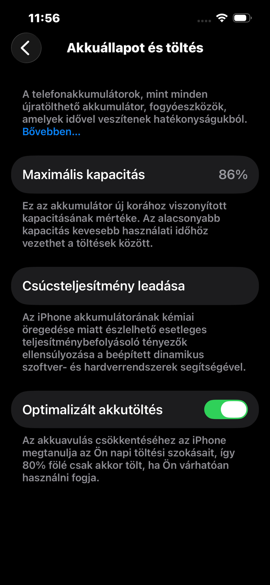 Az akkumulátor 86%-os, gyári.