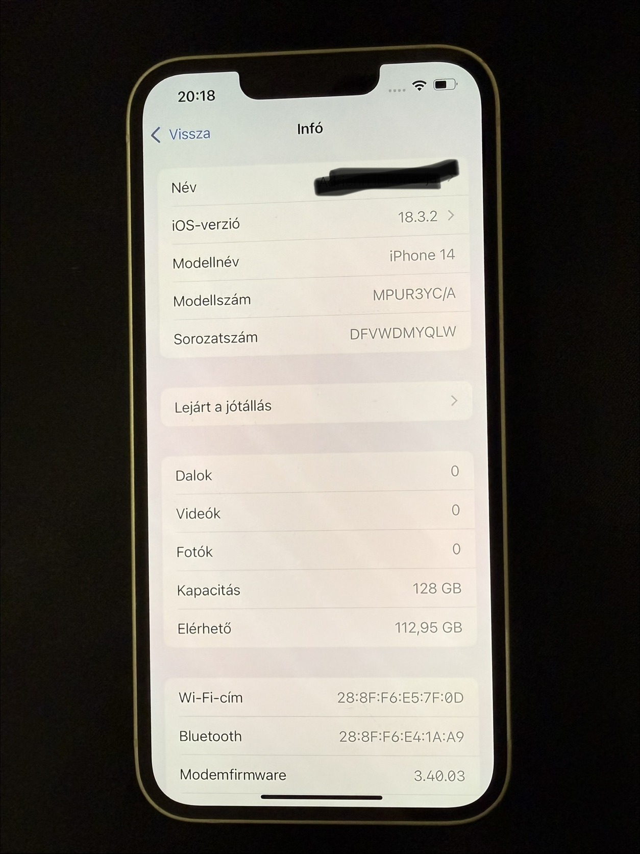 iPhone 14 128Gb Fehér 85% Akksi