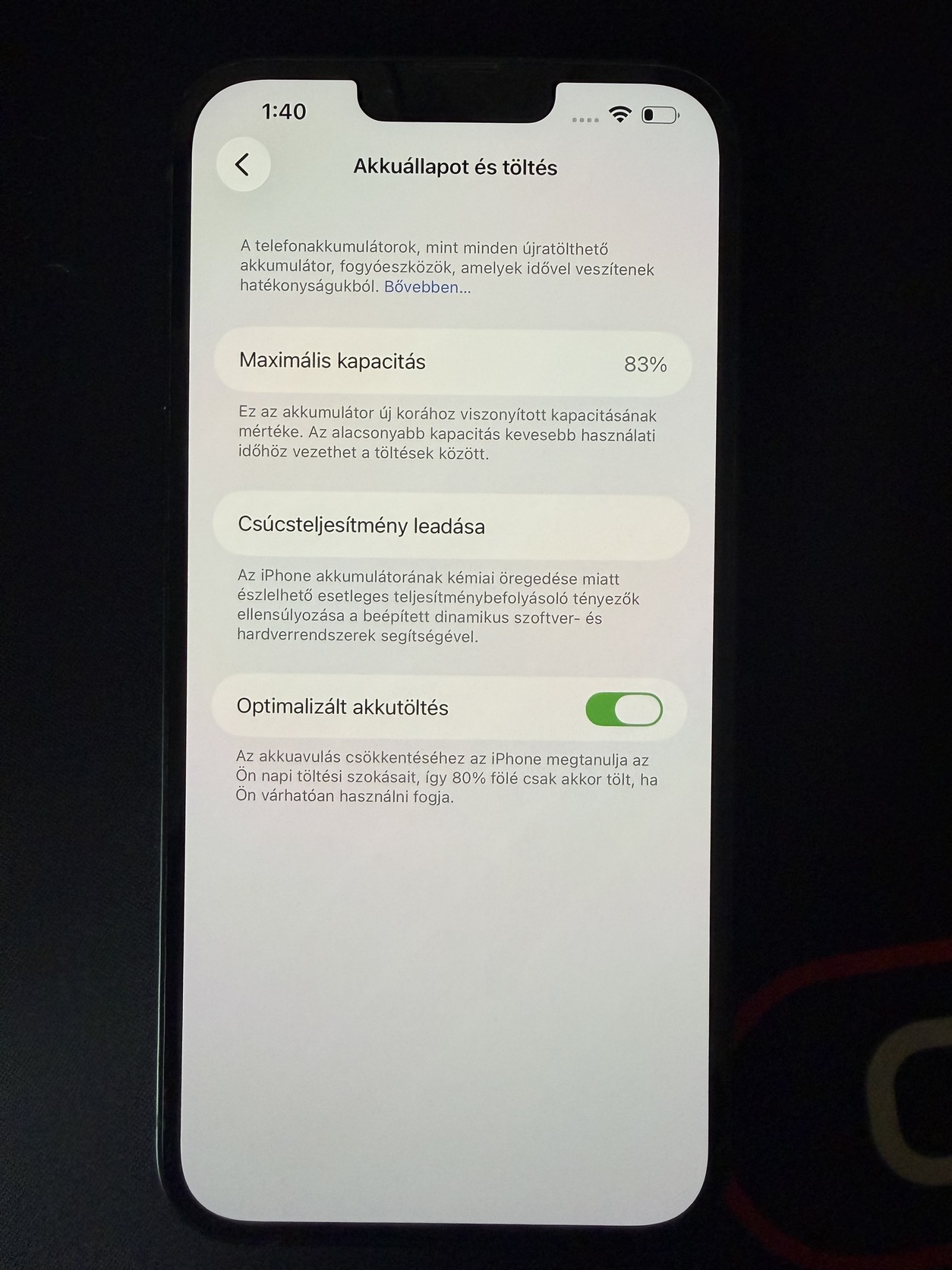 Gyári akkumulátor melynek 83% a kapacitása.