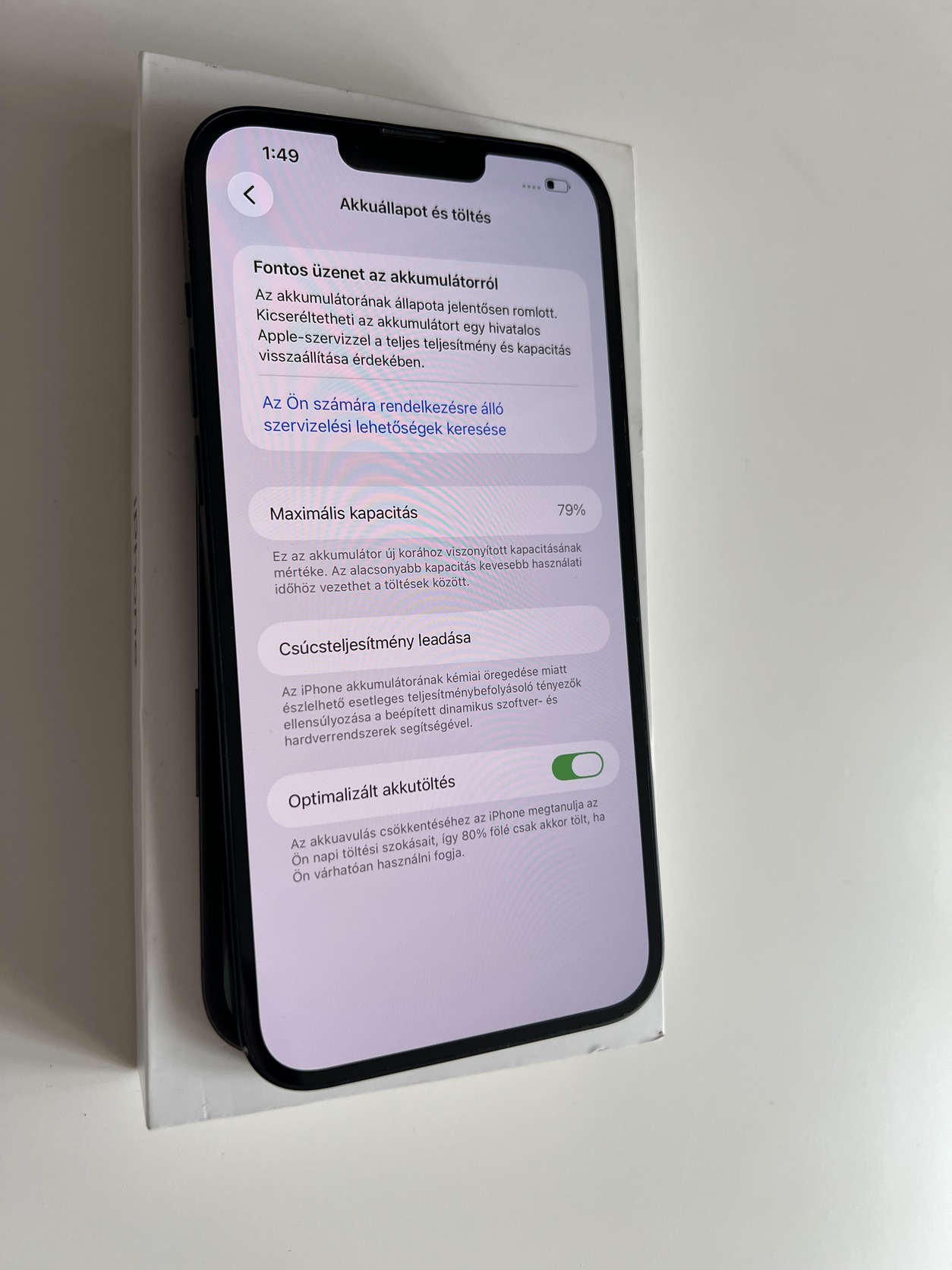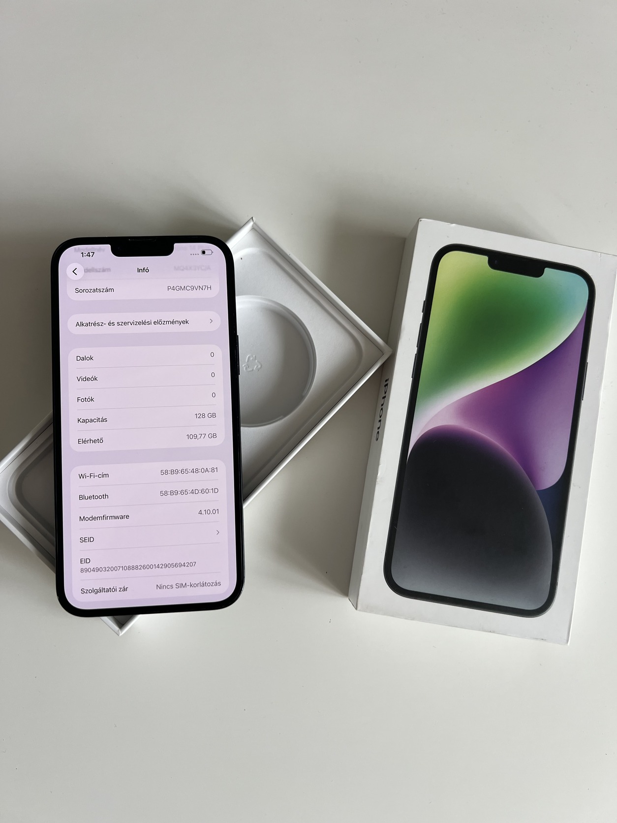 Eladó egy használt állapotban lévő kártyafüggetlen iPhone 14 Plus 128GB Midnight, minden funkciója tökéletesen működik, akksi 79%.