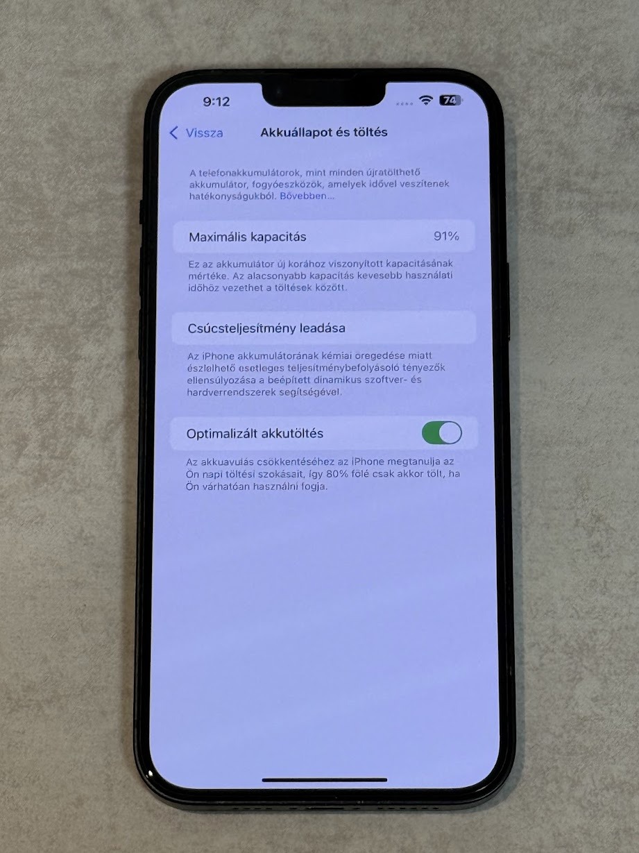 Akku állapota: 91% (gyári)