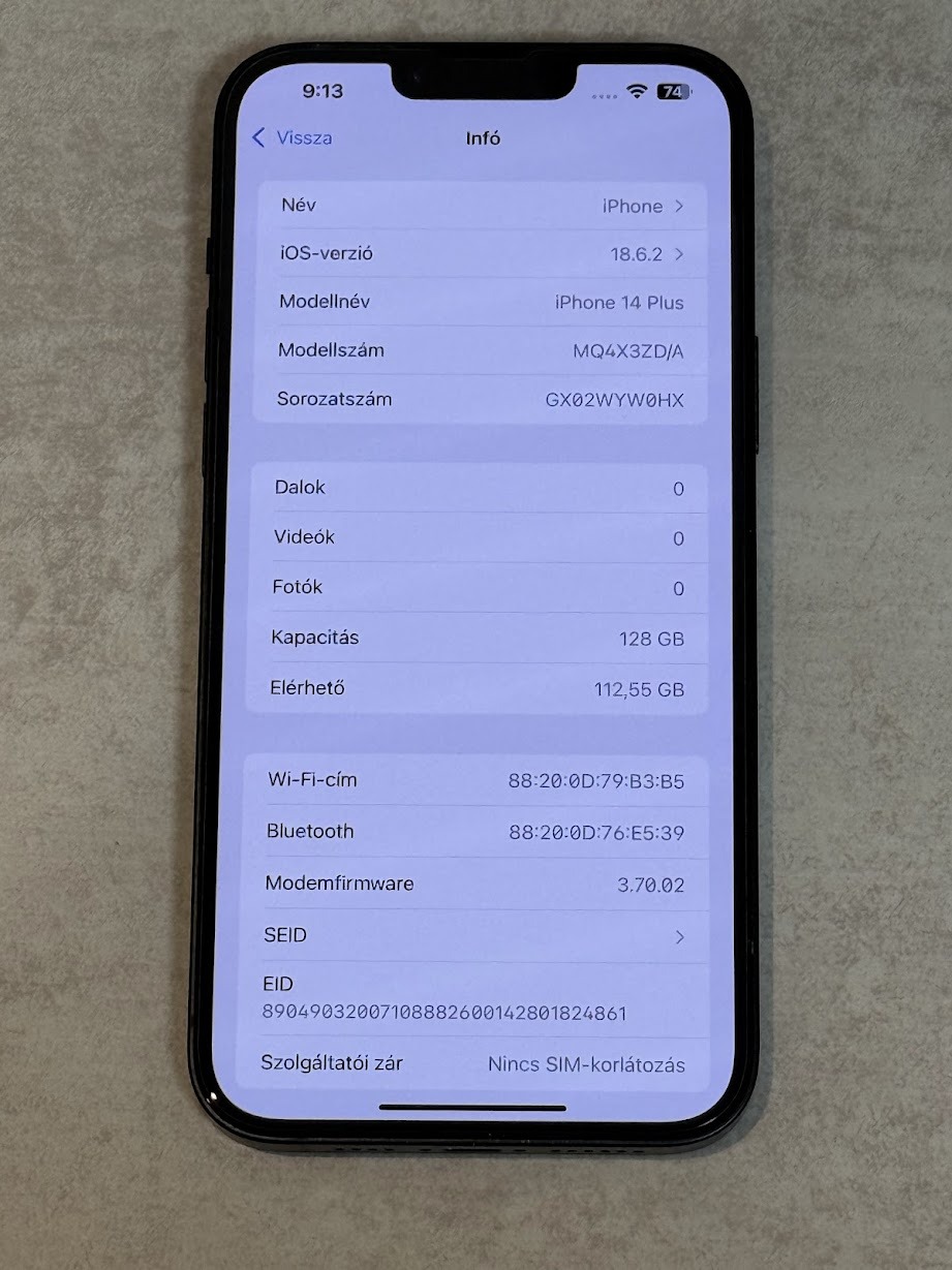 iPhone 14 Plus Midnight 128 GB, Független! 91% Akku!