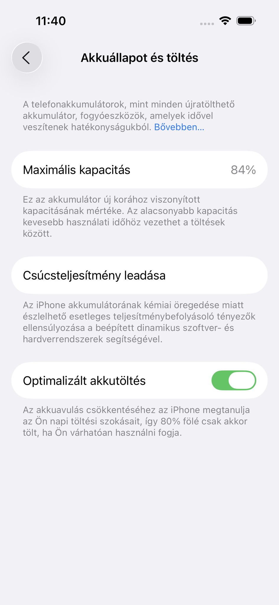 🔋 84%-os akkumulátor, ami simán kibír egy napot