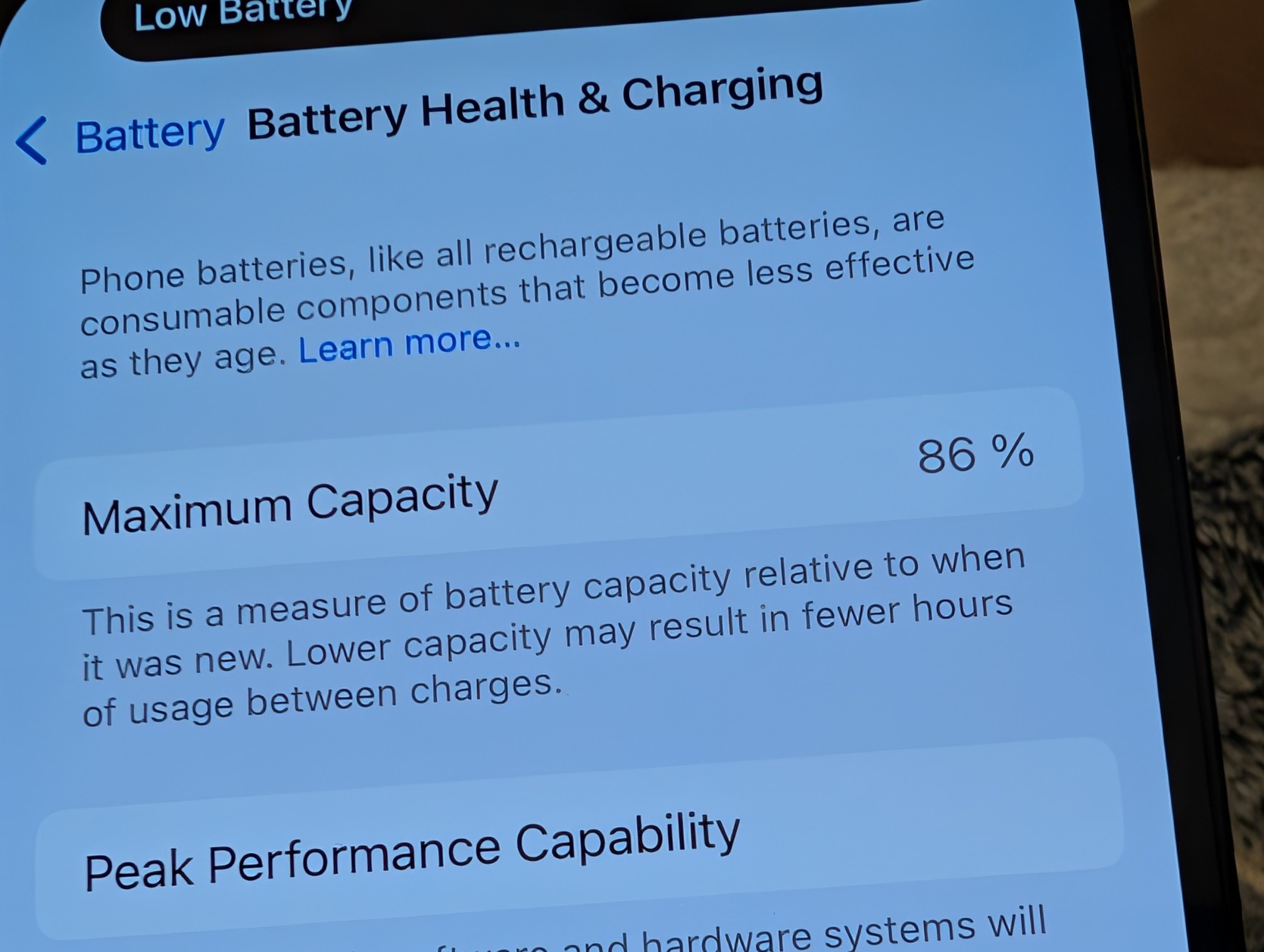 Akku 86% gyári, stabil üzemidő.
