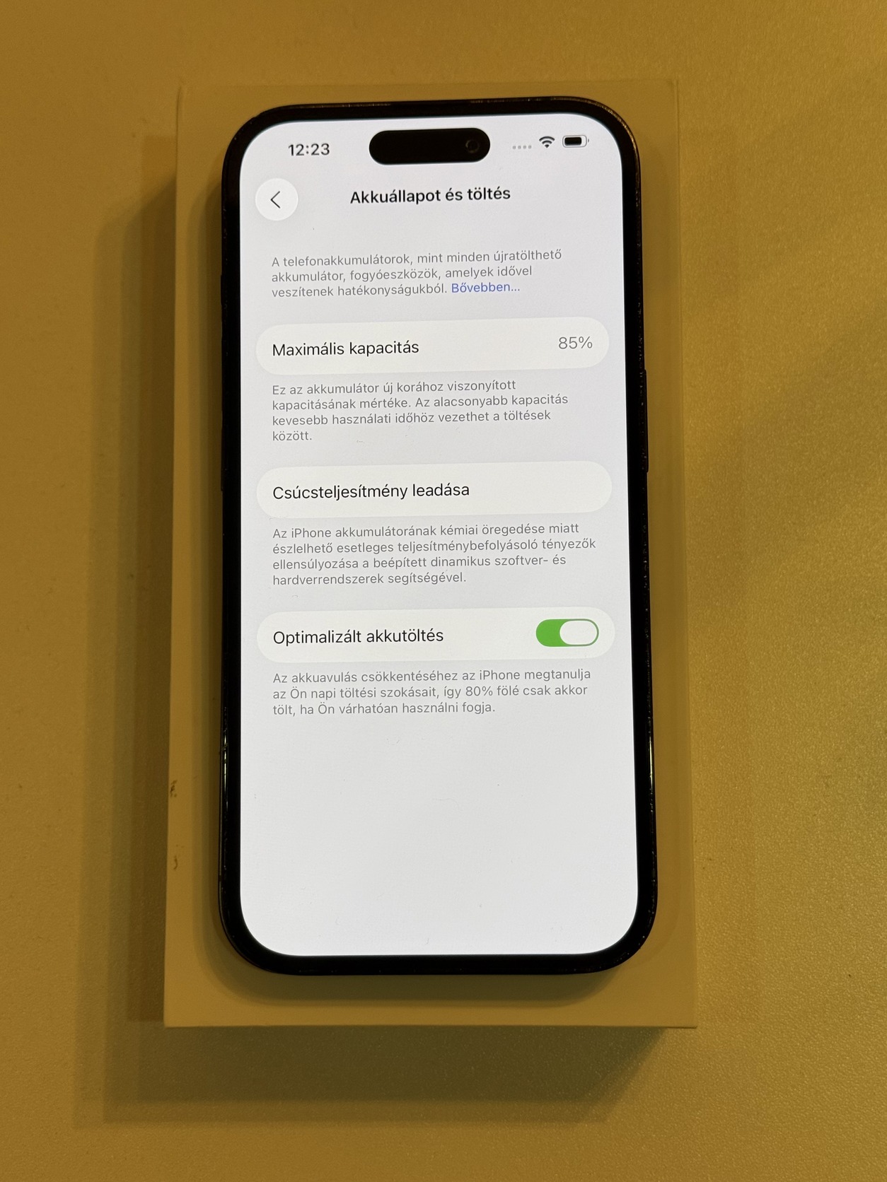 Akku állapot 85%