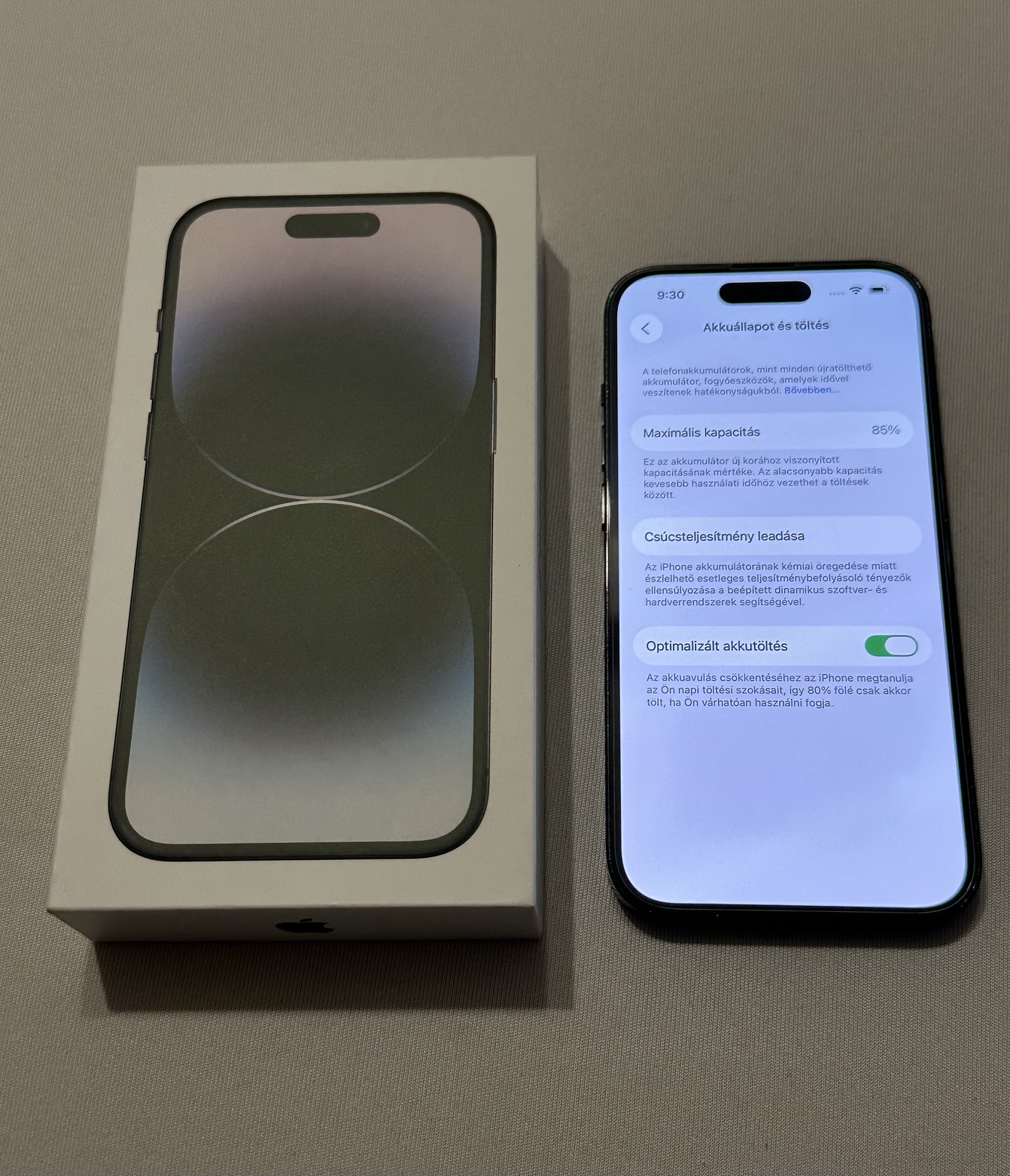 85%-os gyári akkumulátorral.