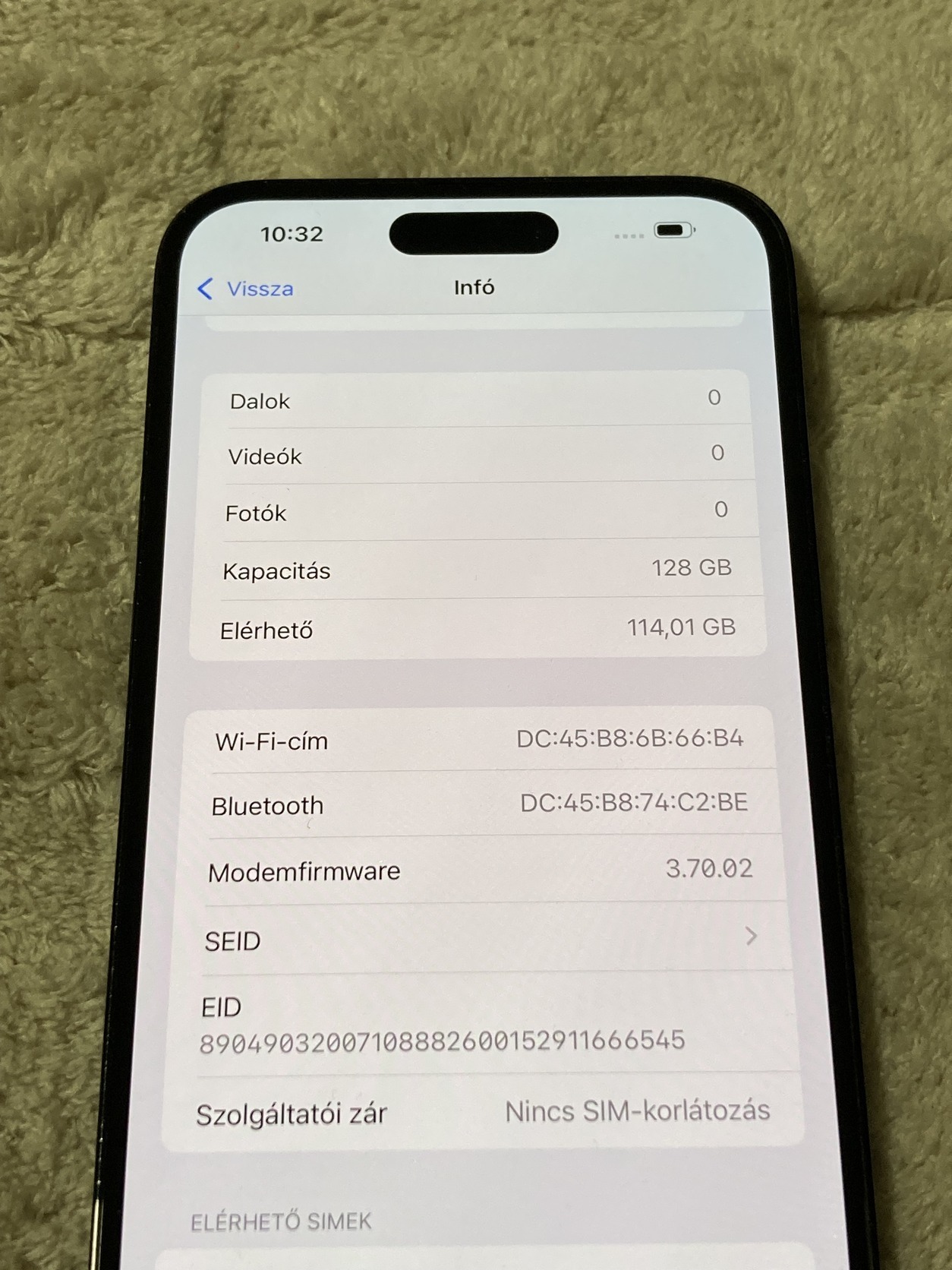 Eladó egy normál állapotú, kijelzőn használatból eredő kisebb karcokkal iPhone 14 PRO MAX 128GB space black színű KÁRTYAFÜGGETLEN mobiltelefon.