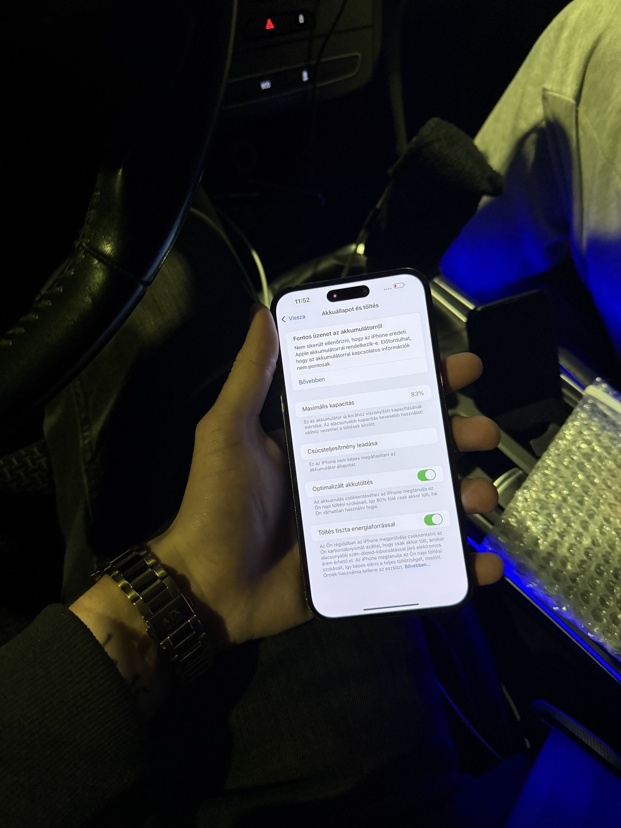 A készülék csak a telefon, doboz és töltő nincs hozzá.