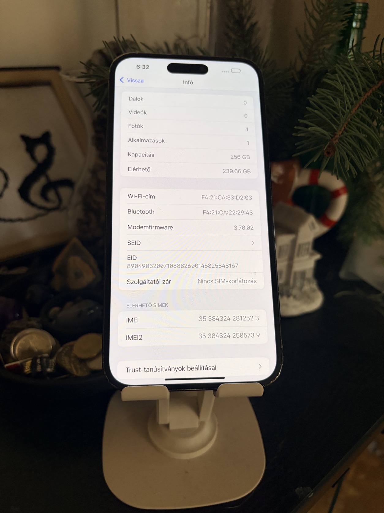 Eladó iPhone 14 Pro Max 256GB-os készülék space black színben. Független, így minden hálózaton használható. Face ID, kamerák tökéletesen működnek. A kijelzőn apró karcok találhatóak. A keret, illetve hátlap kopott a képeken látható állapotban. A szervízelési előzmények között csak az akkumulátor szerepel.