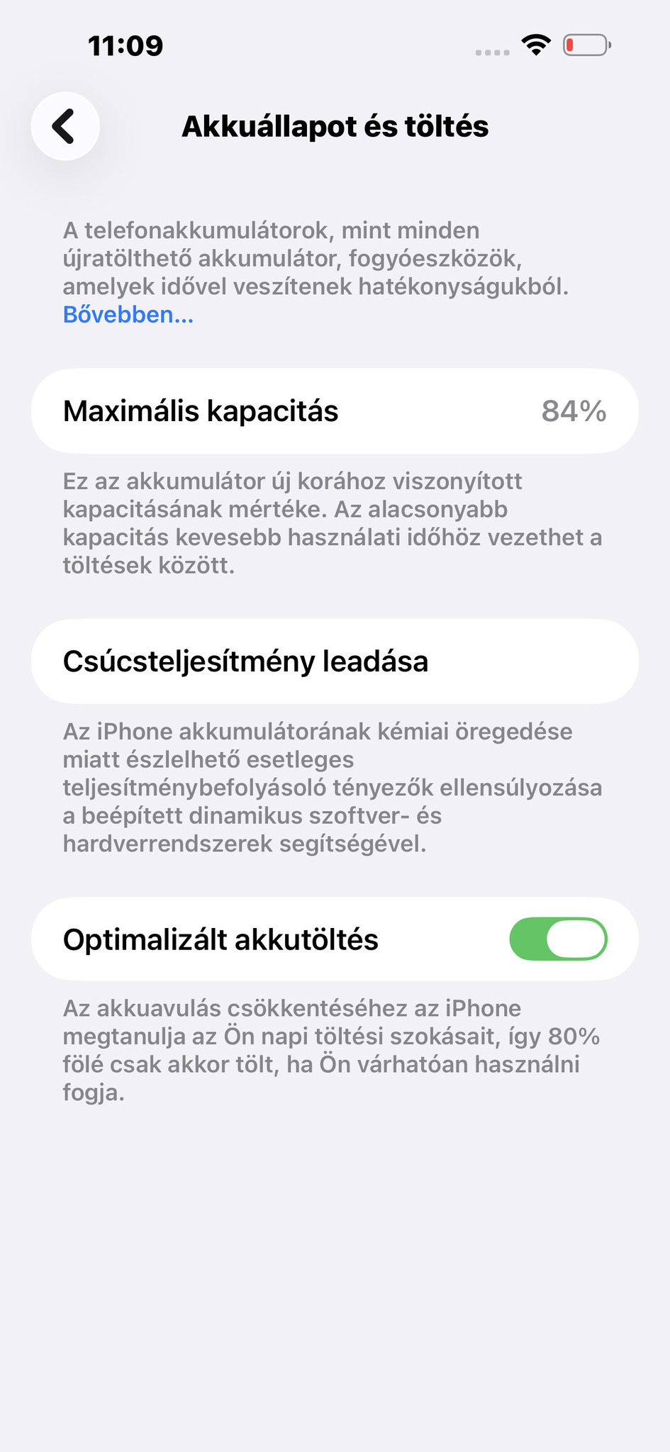 Akkumulátor 84%.