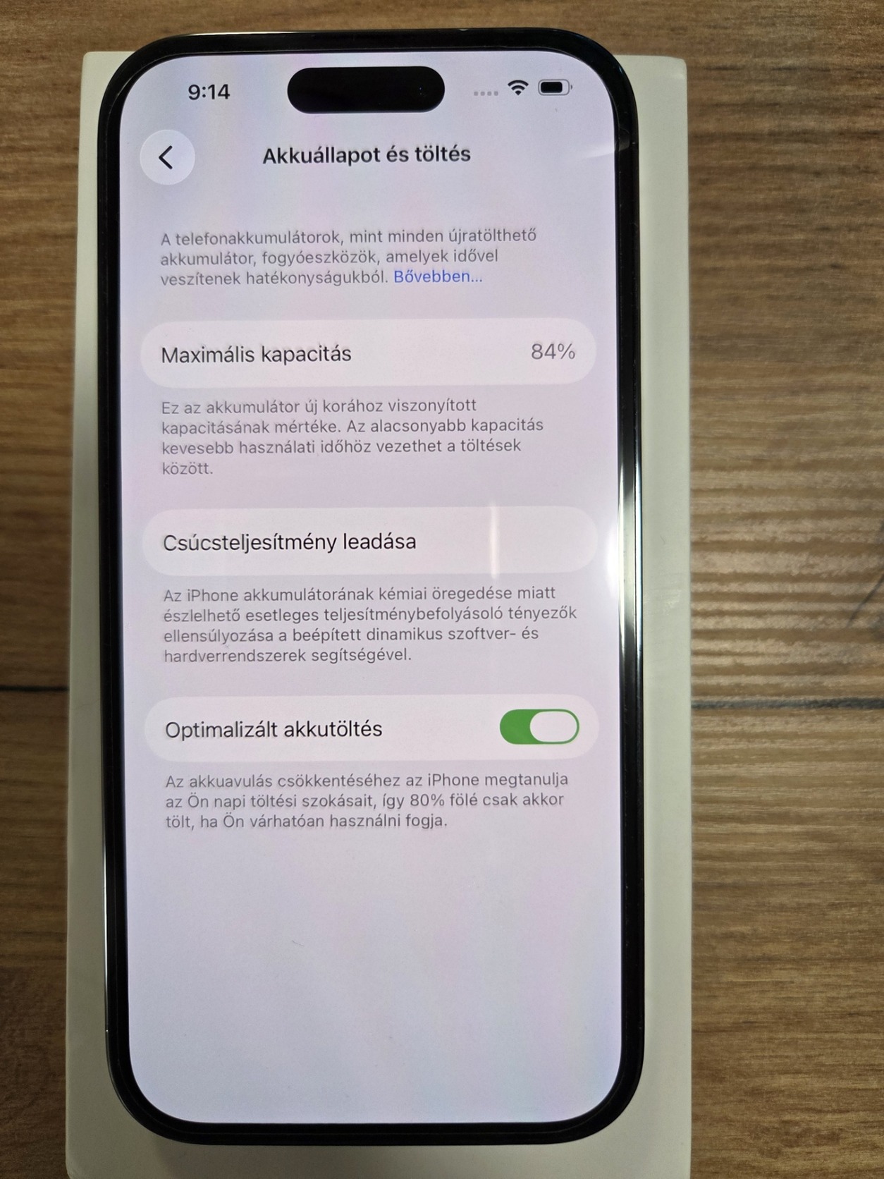 - Akkumulátor állapot: 84% (Normál napi használatra teljesen rendben van)