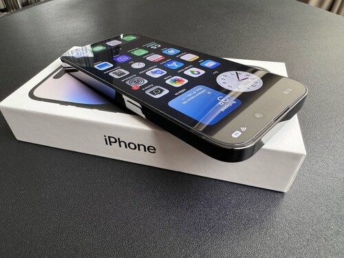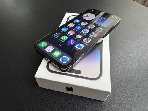 iPhone 14 pro 128 Gb kártyafüggetlen ténylegesen (hajszál-) karcmentes Space Black színű, kifejezetten új állapotú, hibátlan telefon dobozával és bontatlan tartozékaival eladó. Akku 100%.
