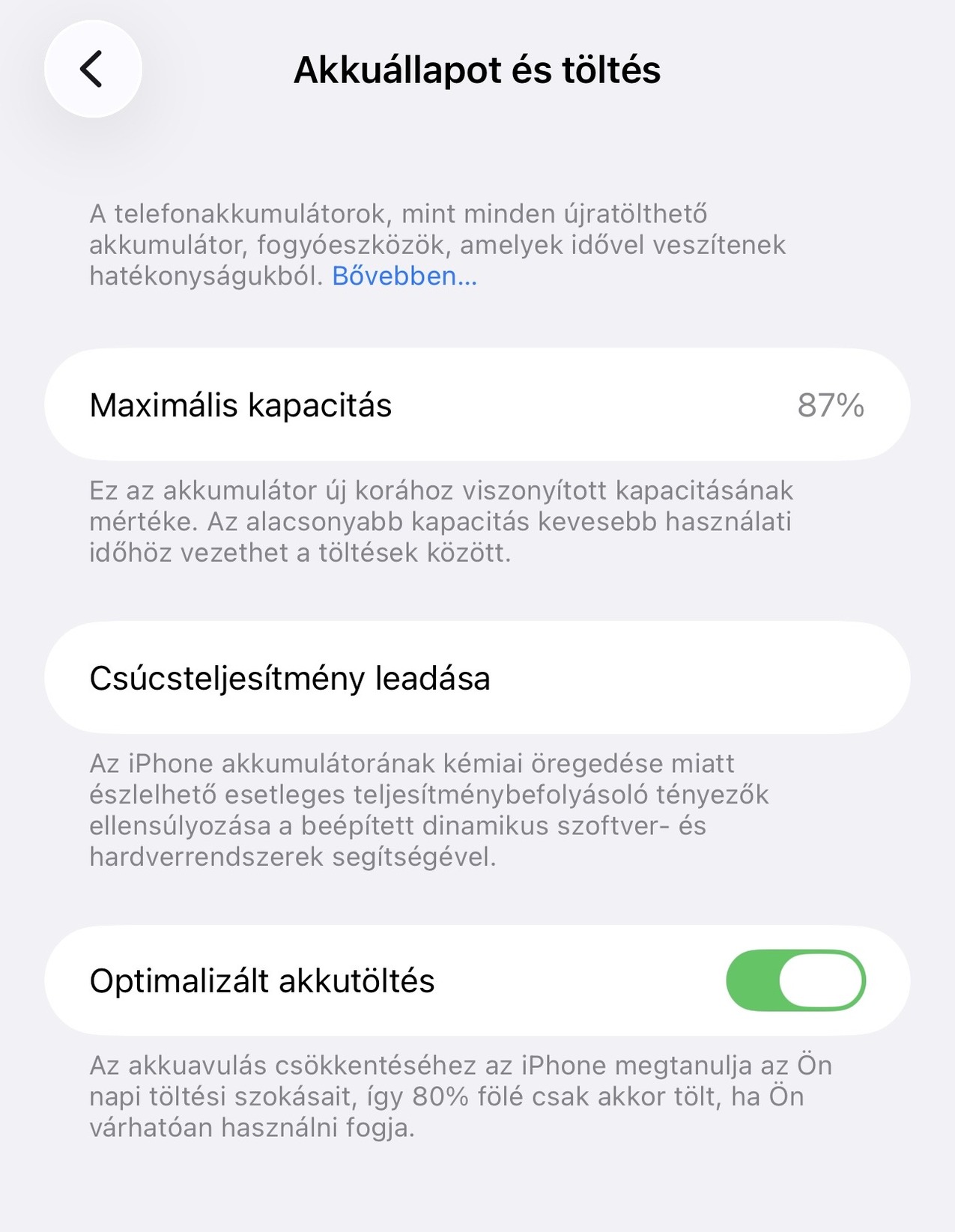 Eladó iPhone 14Pro Max 128GB tárhellyel, 87%-os akkumulátor kapacitás.
