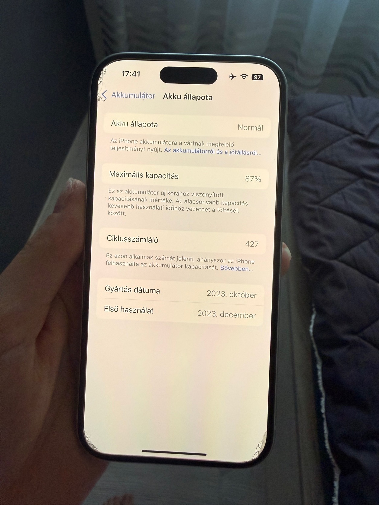 Akkumulátor 87%-os ami a képen is látszik.