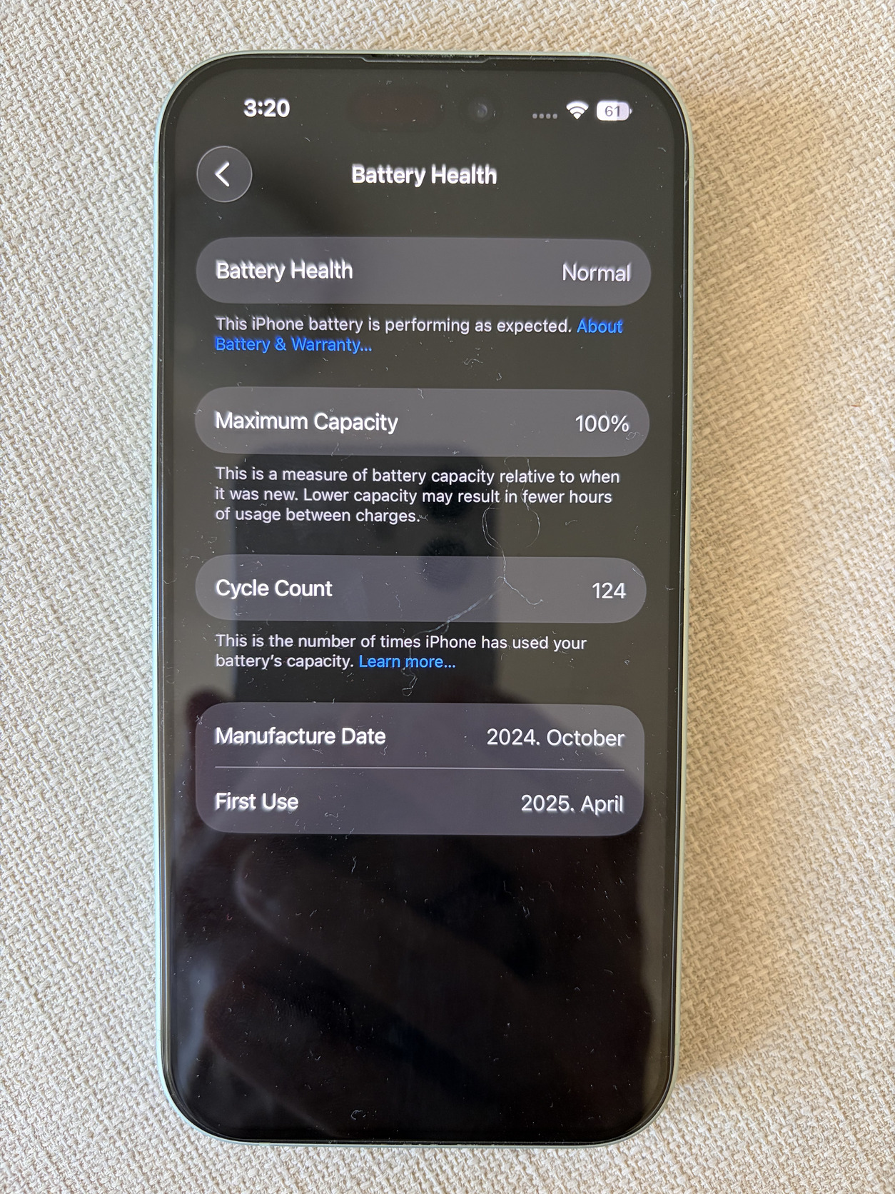 iPhone 15 128GB Green, Akku 100%