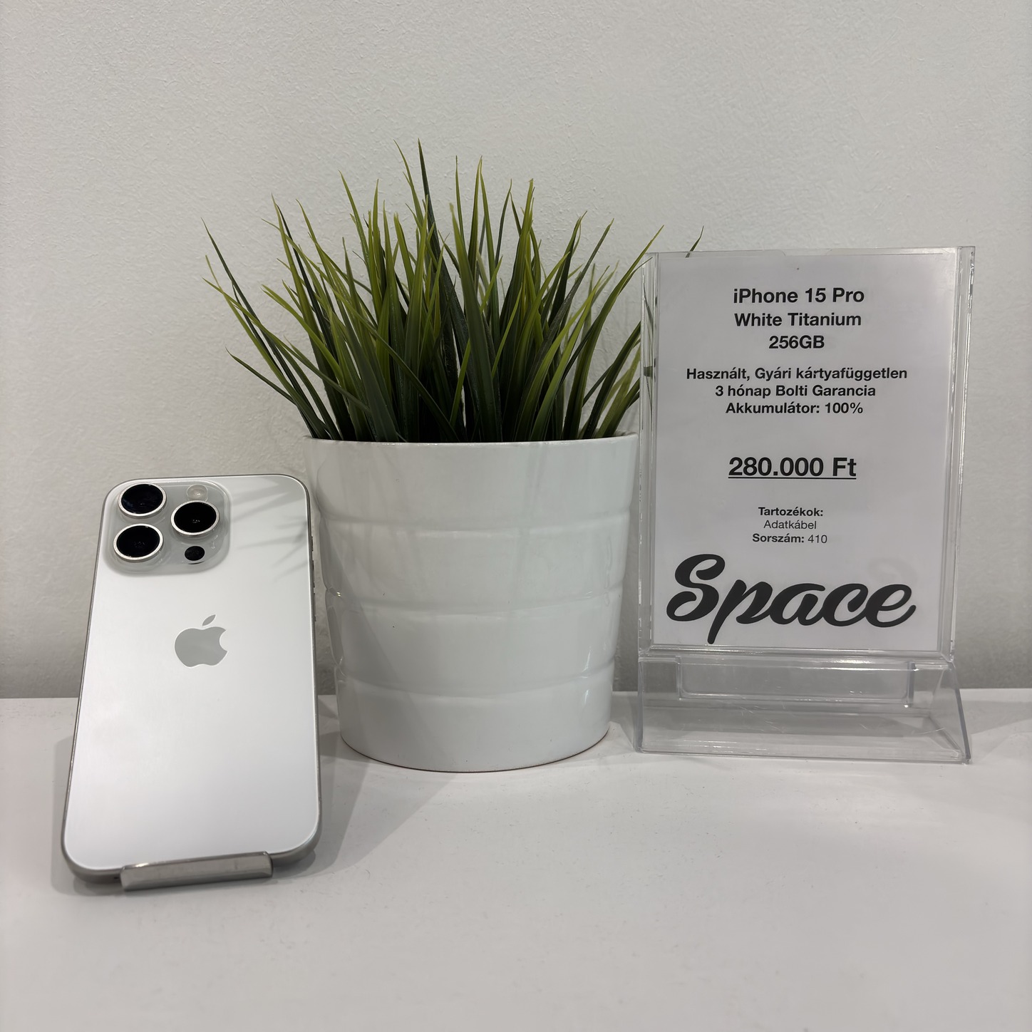 iPhone 15 Pro / 256GB / White Titanium / Gyári kártyafüggetlen (410)