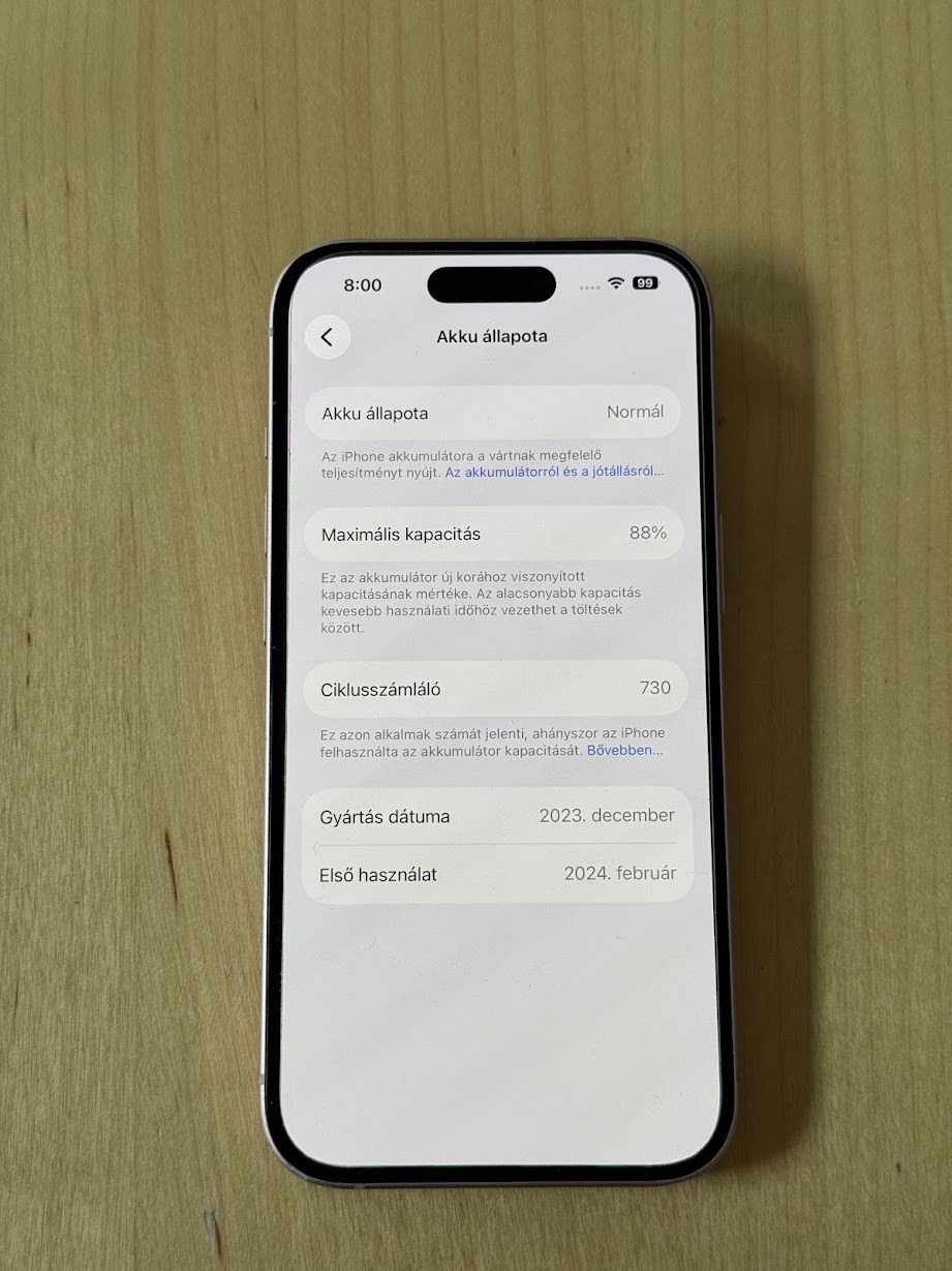 Akku állapota: 88% (gyári)