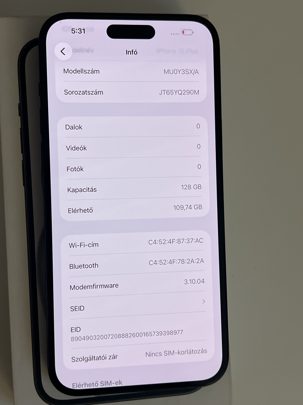 Eladó egy szép állapotban lévő kártyafüggetlen iPhone 15 Plus 128GB Black, minden funkciója tökéletesen működik, akksi 89%.