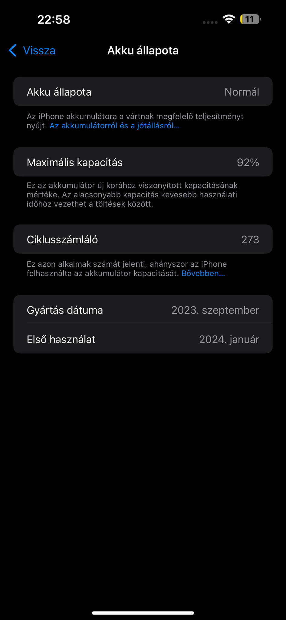 Akkumulátora 92%-os állapotban van.