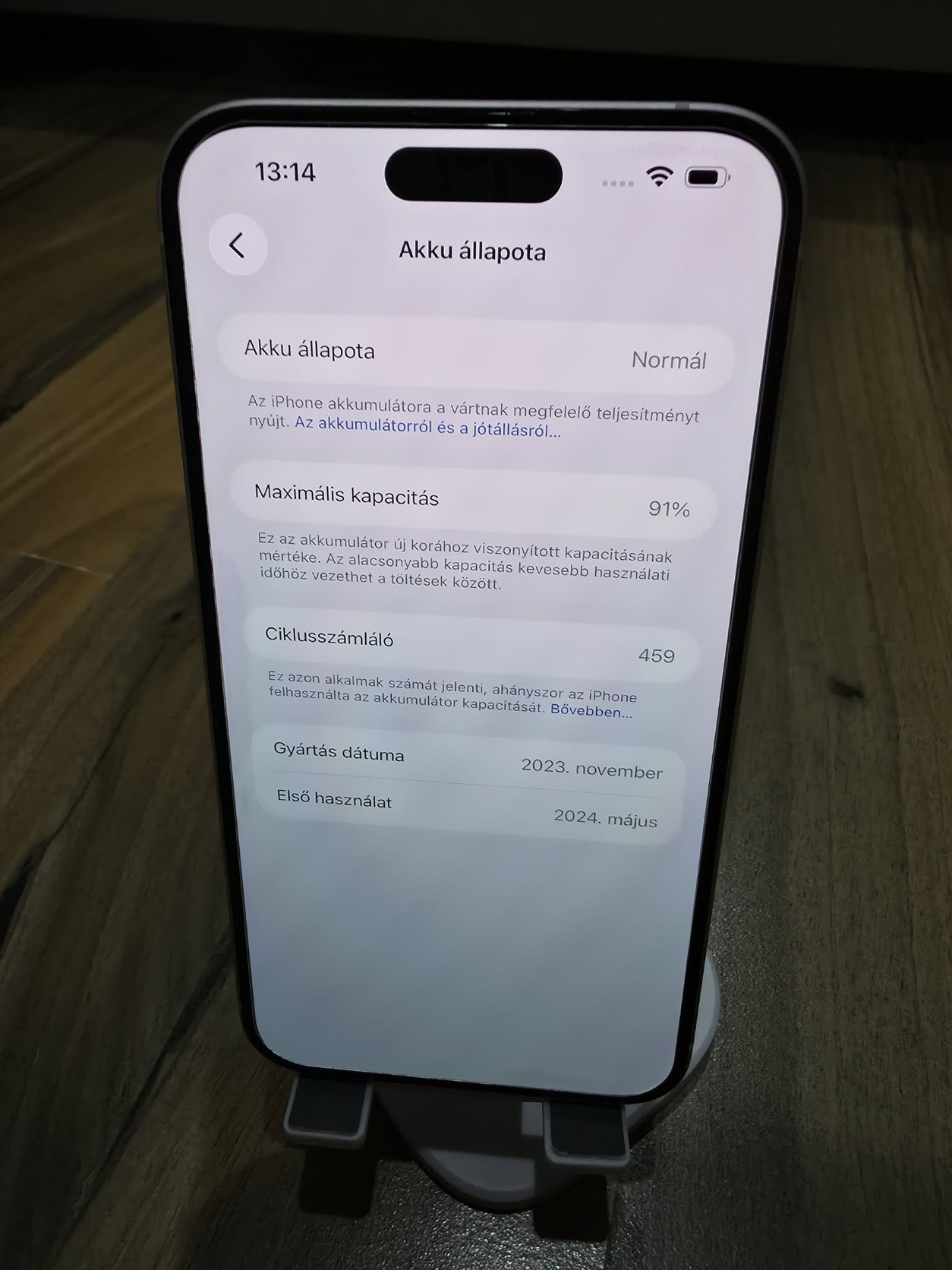 Akkumulátor állapot: 91%