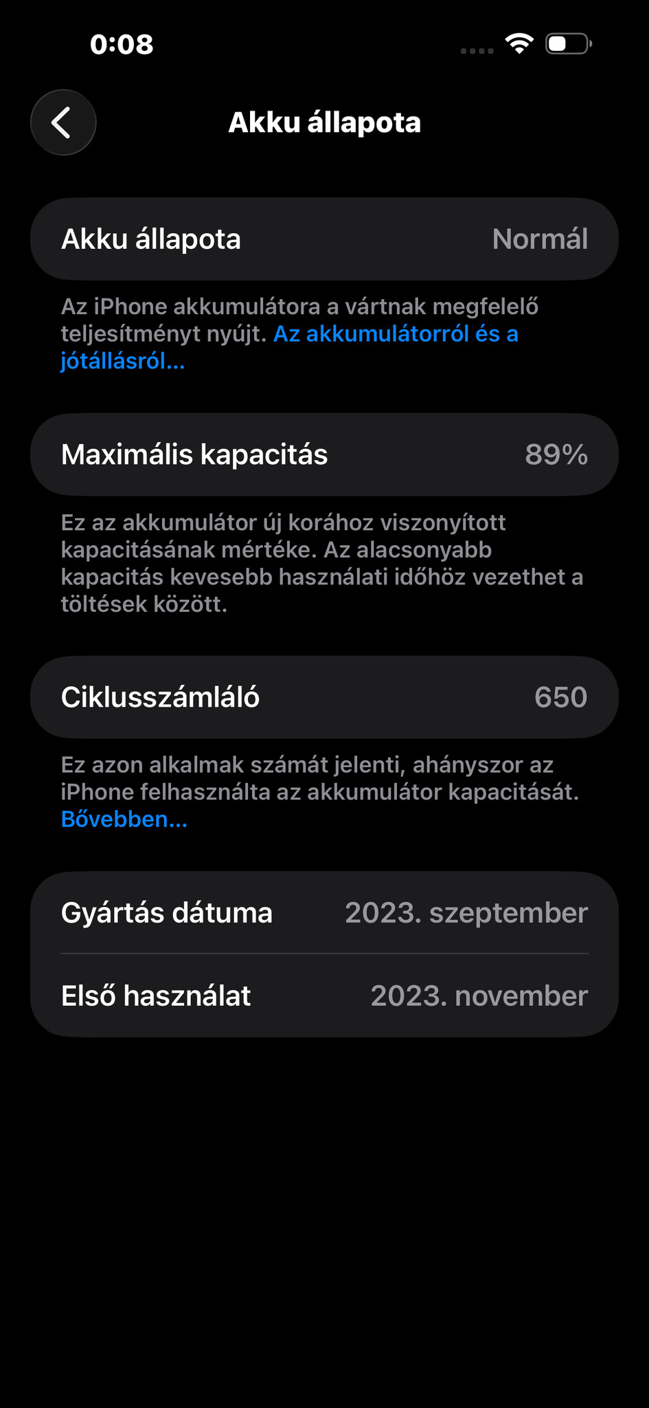 Az akkumulátor gyári 89%-os.