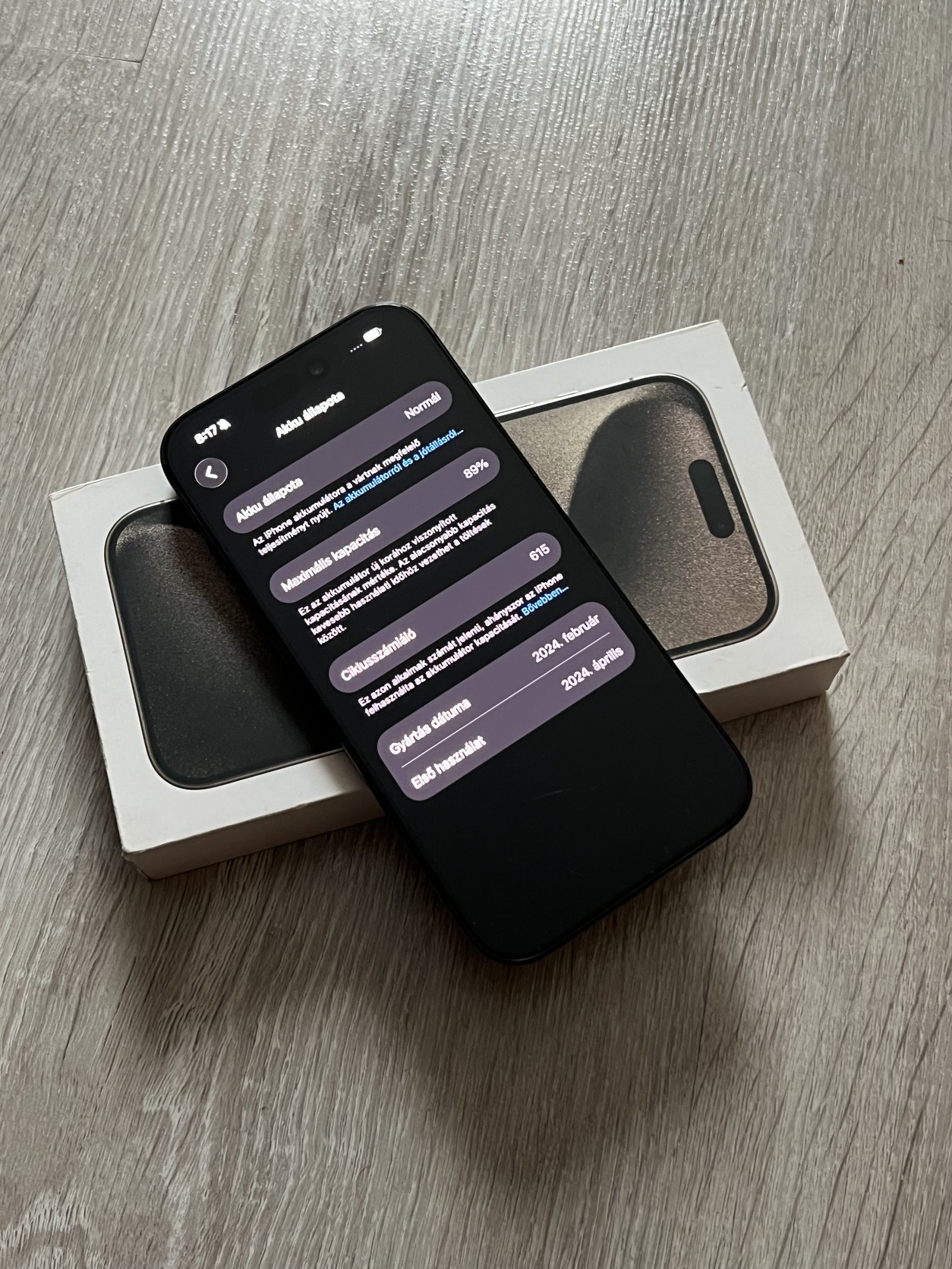 Eladó a képeken látható Apple iPhone 15 Pro összes tartozékával együtt.