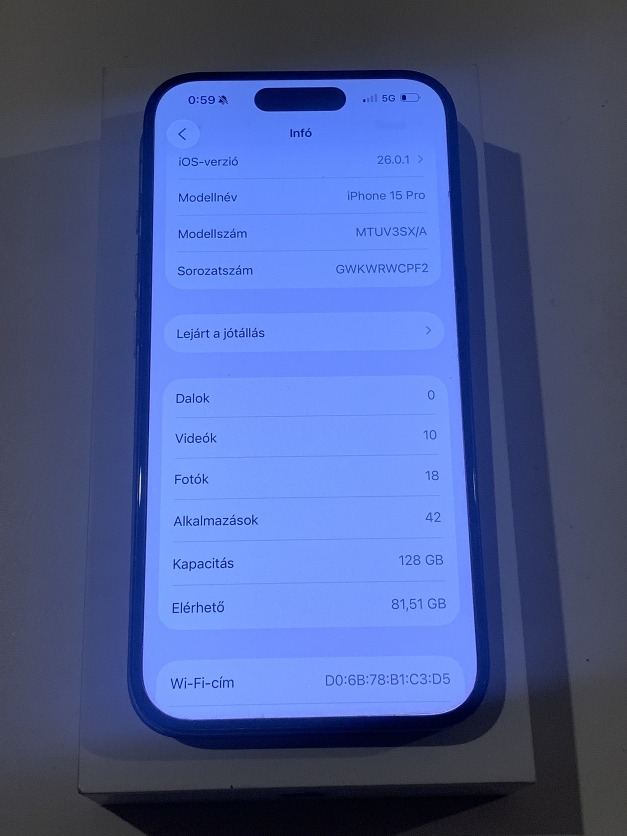 Eladó a címben említett Iphone 15 pro 128Gb, első perctől fólia védi a kijelzőt, oldalán egy két kis karc/sérülés van, (fotóztam).