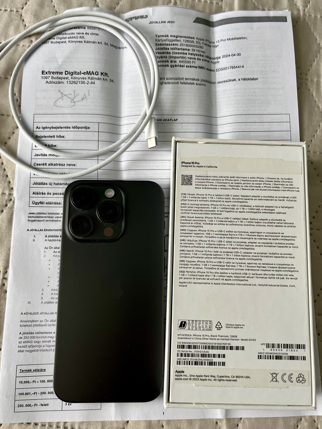 iPhone 15 Pro 128GB Black Titanium, garancia 2027.áprilisig