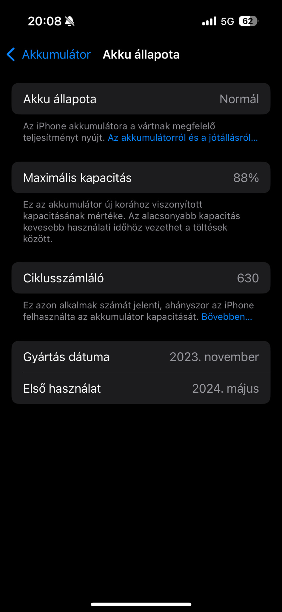 🔋 Akkumulátor egészségi állapota: 88%