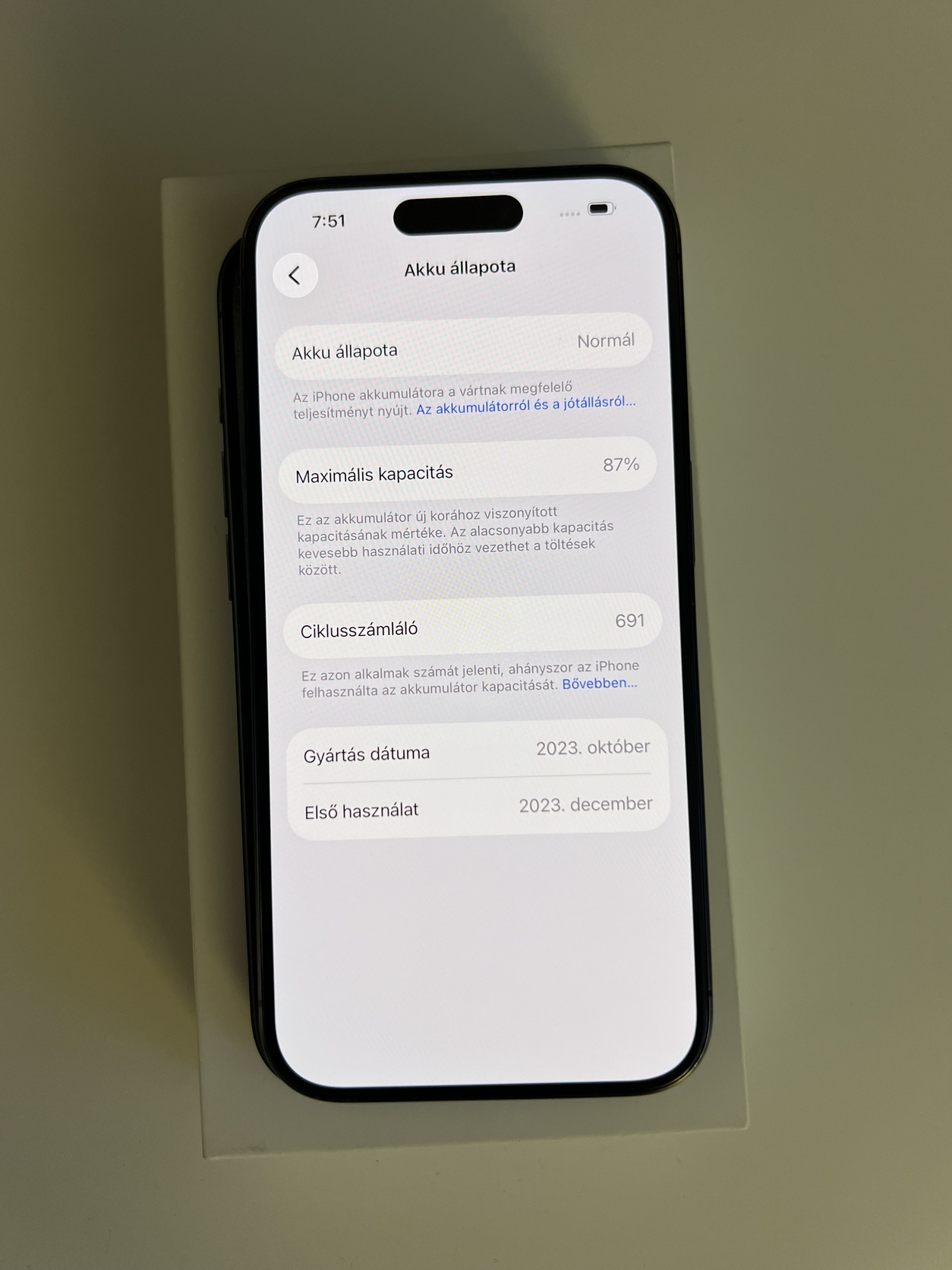 Eladó egy szép állapotban lévő kártyafüggetlen iPhone 15 Pro 128GB Blue Titanium , minden funkciója tökéletesen működik, akksi 87%.