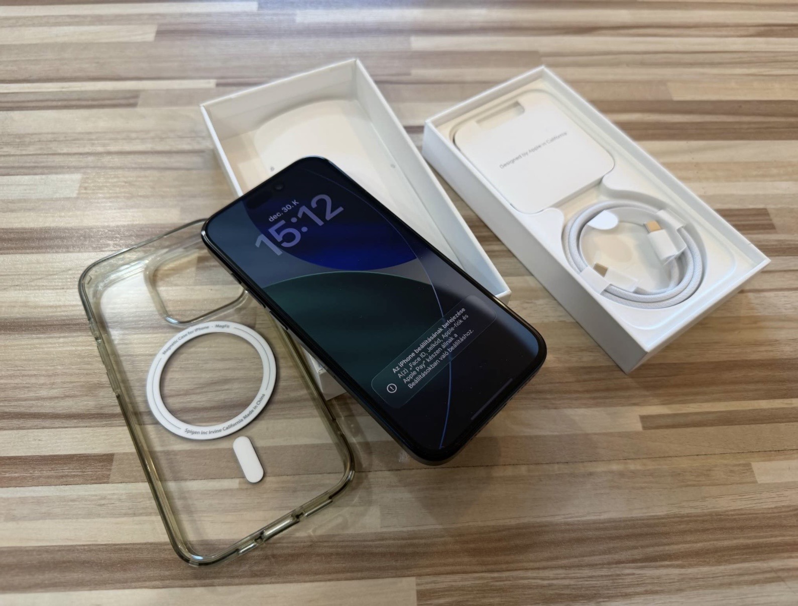 • Tartozékai: doboz, új gyári töltőkábele, Spigen Magsafe tok
