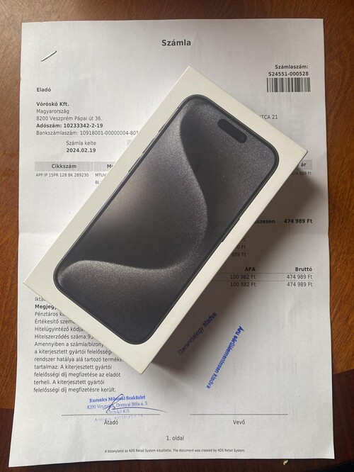 IPHONE 15 PRO 128GB BONTATLAN SZÁMLÁS