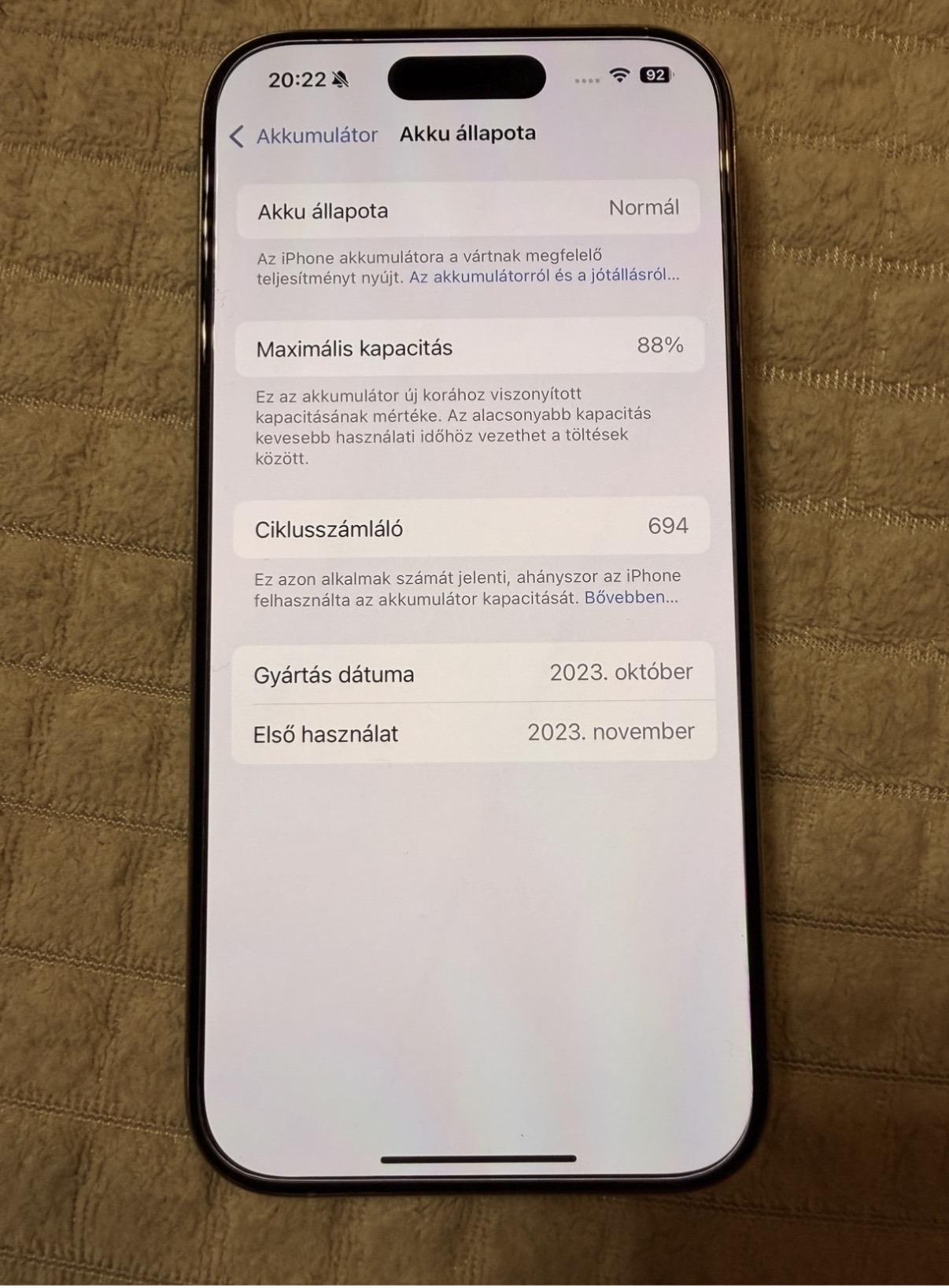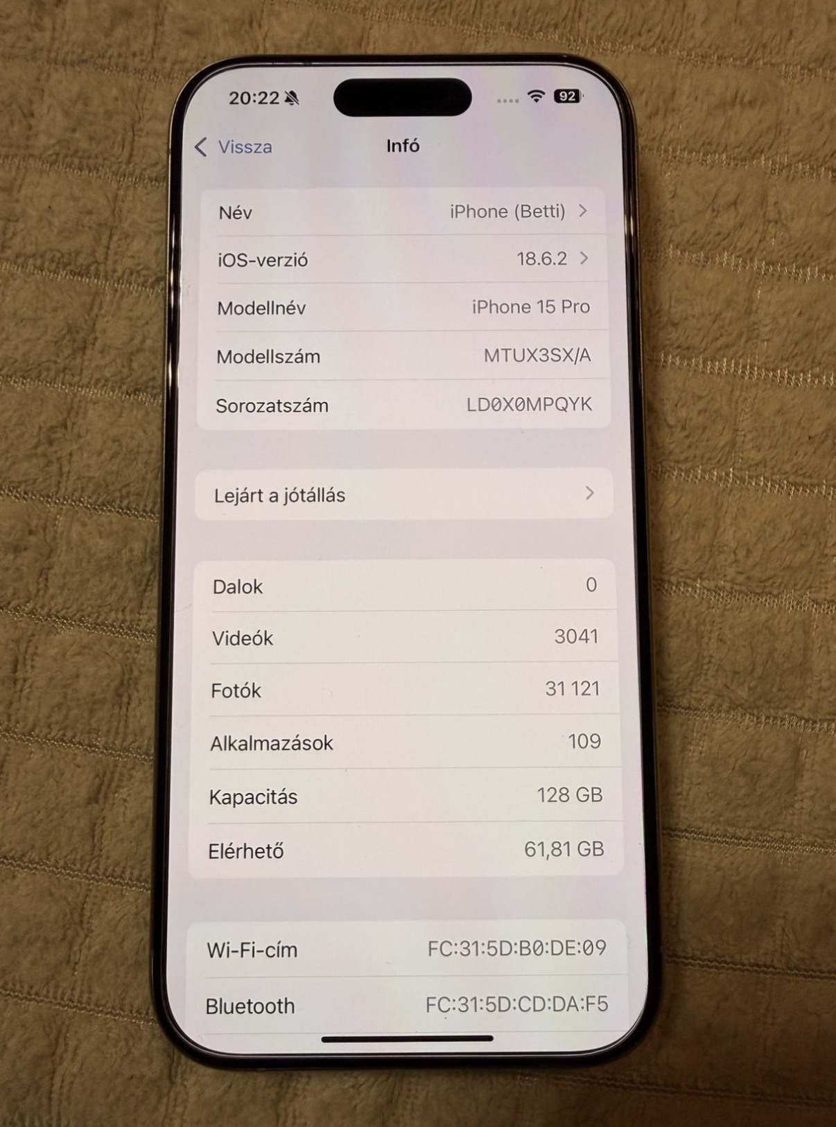 Eladó egy iphone 15 pro 88% os akksival, 0 perces kora óta tokban és fóliában ezért újszerű az állapota. Eredeti dobozában használatlan töltővel új fóliával és tokkal együtt eladó.Postázni nem szeretném.T mobile os vásárlás volt anno, számlája megvan.