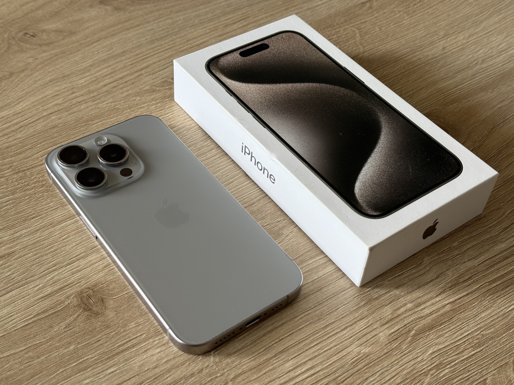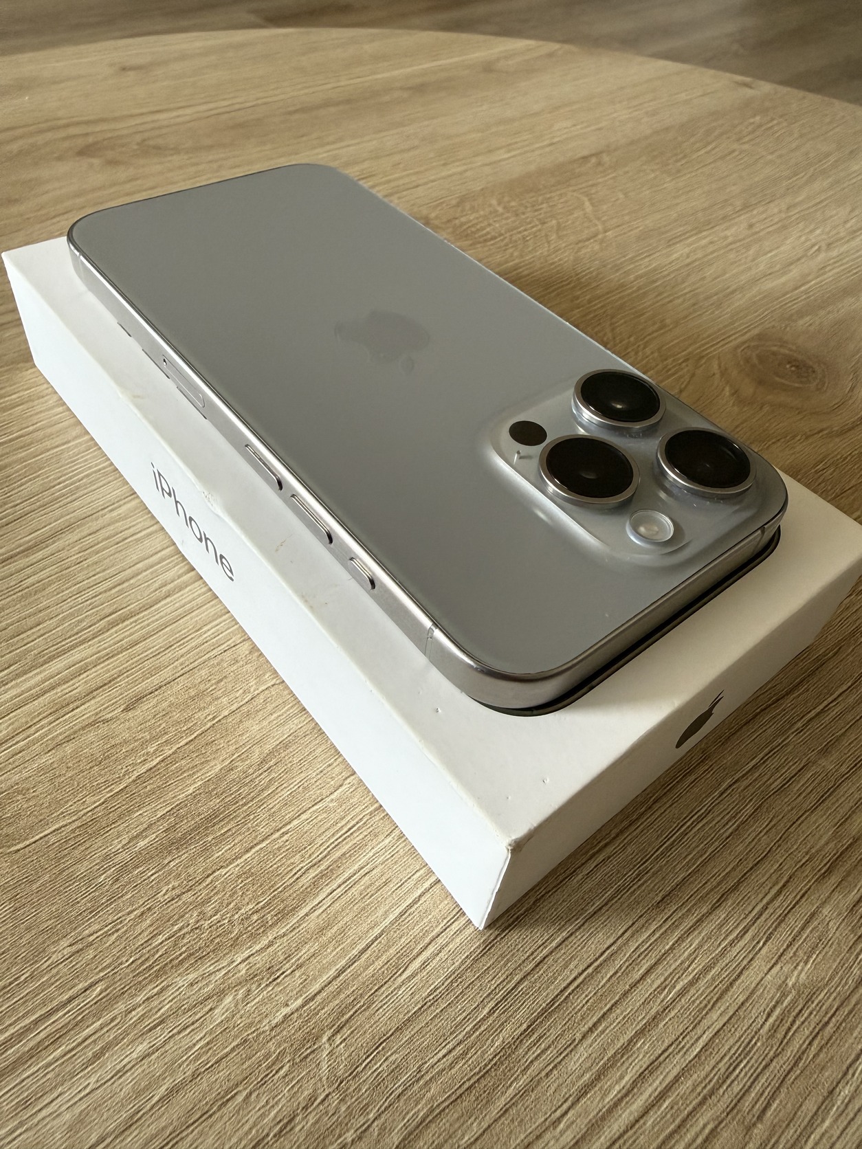 Eladó a képeken látható natural titanium színű iPhone 15 Pro, 128Gb.