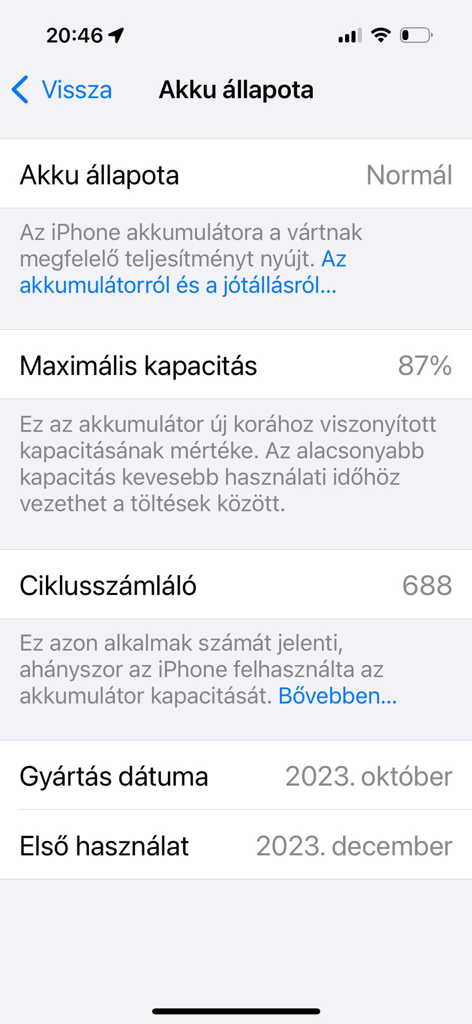 iPhone 15 Pro 256 GB 87% akkumulátor