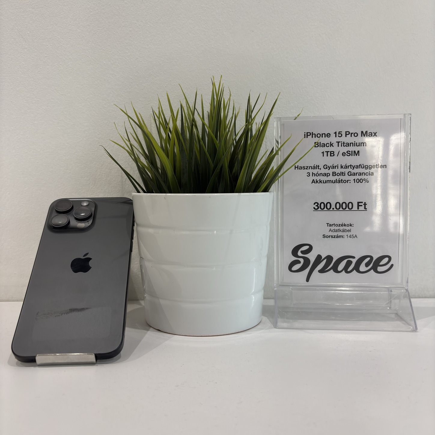 iPhone 15 Pro Max / 1TB / Black Titanium / Gyári kártyafüggetlen / eSIM only (145A)