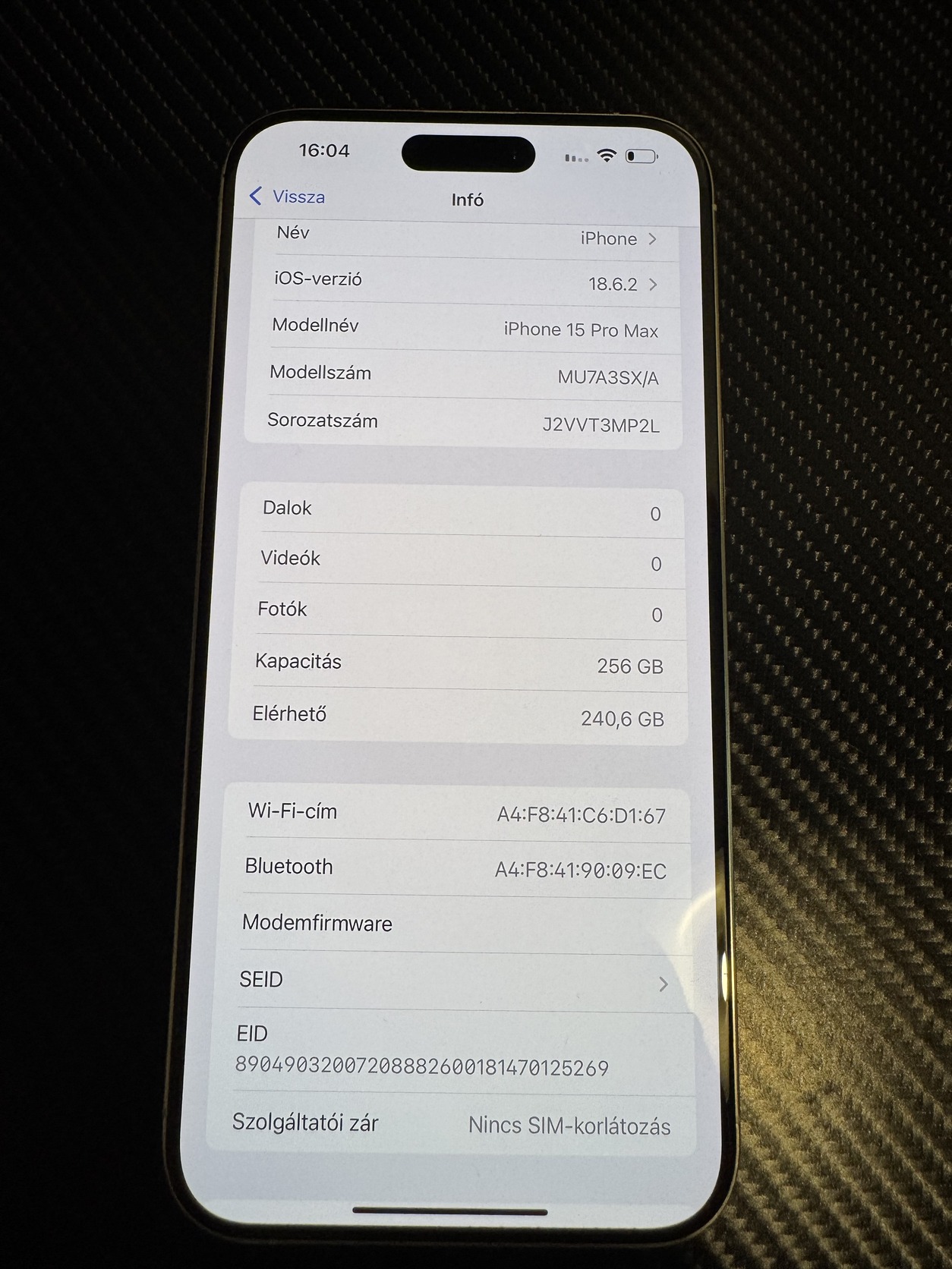 Eladó a képem látható IPhone 15 Pro Max 256 GB mobiltelefon.